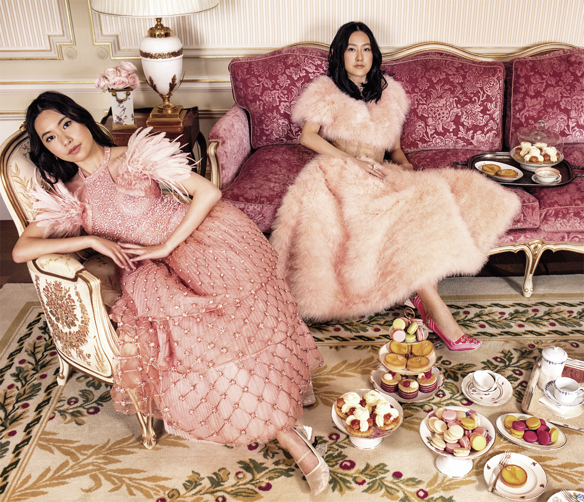 Ngày cuối tại Paris. Những cô gái đến chụp hình tại Ritz. Họ diện những trang phục couture yêu thích từ các show diễn. Chị em Yeoh ngồi giữa một núi bánh macaron tại phòng suit của Maria Callas. Họ diện trang sức Cartier cùng đầm dạ hội Fendi hồng. Họ khiến tôi liên tưởng đến bức họa vẽ chân dung hai nữ công tước trẻ của Ngài Joshua Reynolds. Heart đứng trên ban công, lộng lẫy trong thiết kế từ lông đà điểu của Armani Privé và trang sức Chopard. Cô xinh đẹp đến mức khiến tôi quên ngắm cảnh xung quanh. Feiping trong vườn, diện bộ đầm vải tuyn xanh nhạt mà cô đã để ý trong show diễn Giambattista Valli. Khung cảnh ấy khiến tôi hiểu ra bản chất của couture.
