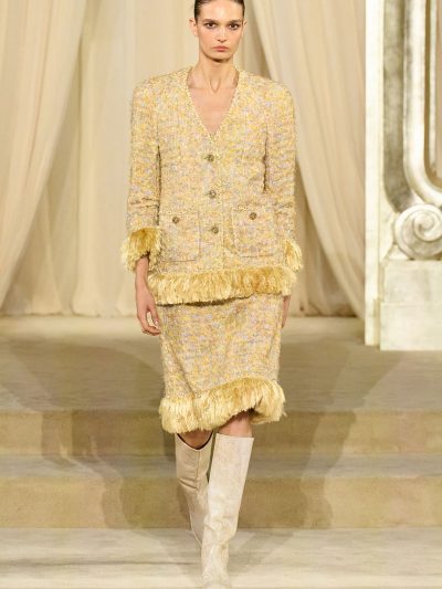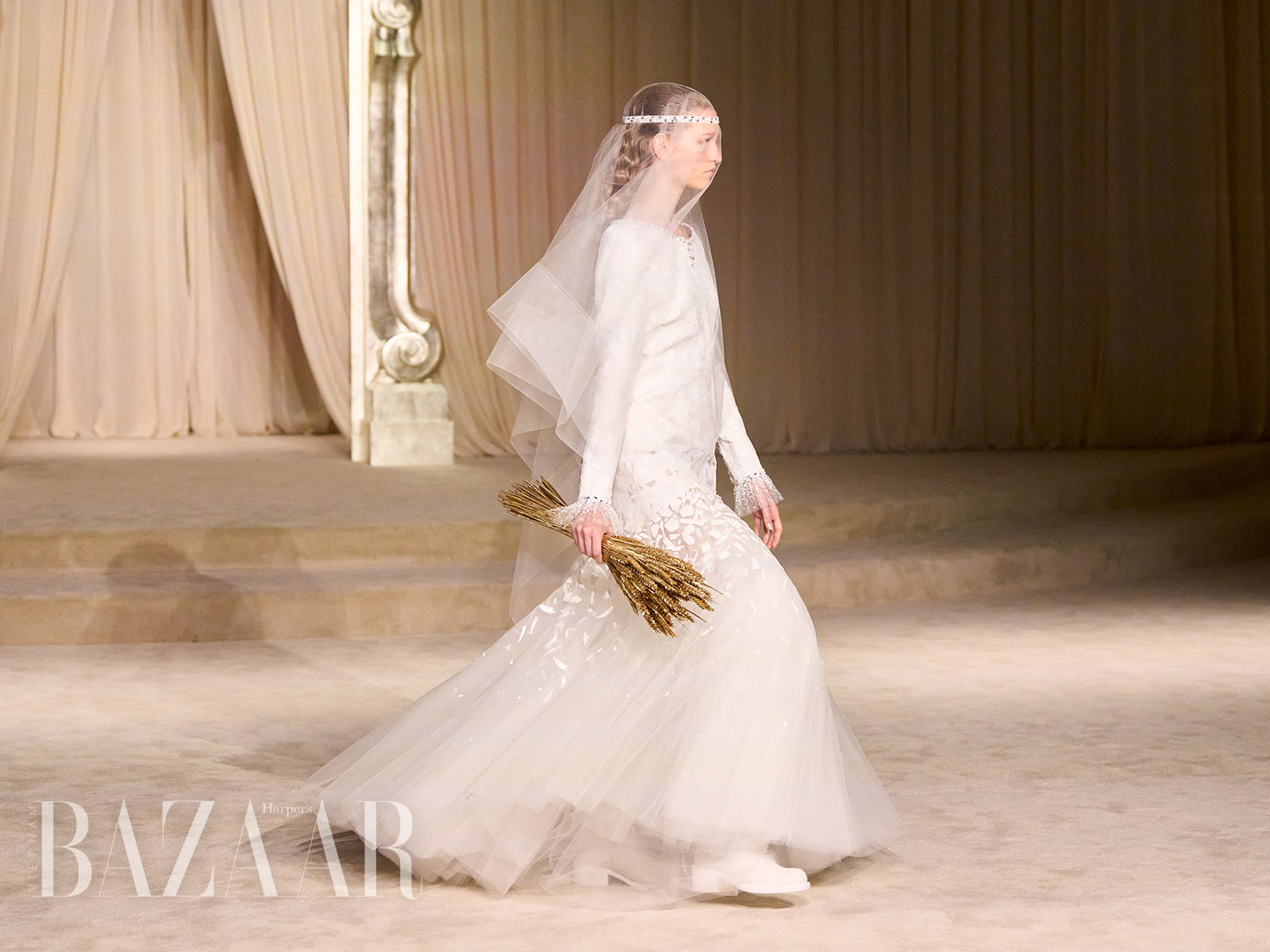 Lúa mì cũng là một biểu tượng đã gắn liền với Chanel, tuy không được khai thác nhiều như hoa trà hay nơ, và đại biểu cho sự sung túc. Hình ảnh những bó lúa mì xuất hiện xuyên suốt bộ sưu tập, thêu trên cổ áo và thể hiện qua những tua rua trên ống tay áo, và dệt trên bộ cánh mở màn. Tất cả như một lời chúc cho sự khởi đầu của tân giám đốc sáng tạo Matthieu Blazy, người sẽ trình làng bộ sưu tập đầu tay cho Chanel vào mùa ready-to-wear Xuân Hè 2026 trong ba tháng nữa.