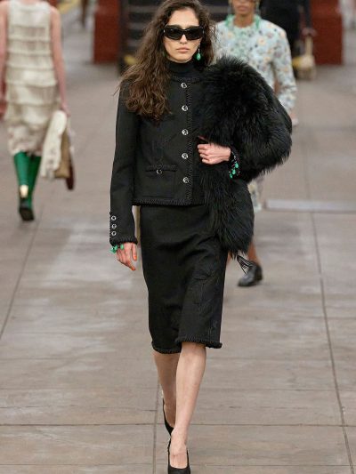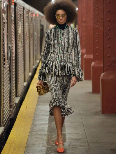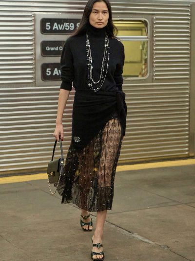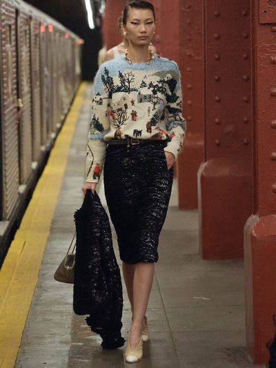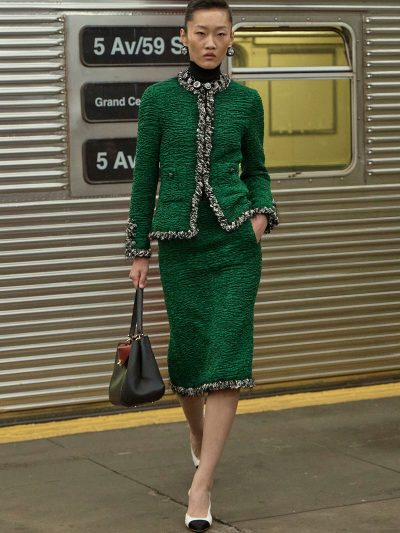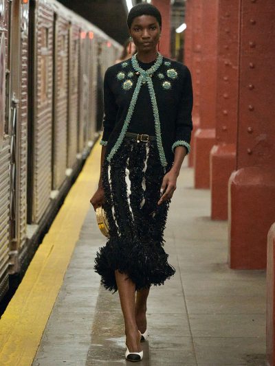 Nhìn chung, người phụ nữ được thể hiện trong show Chanel Métiers d’Art 2026 là bất kỳ ai ta có thể bắt gặp trên đường phố New York. Học sinh sinh viên, người mẫu, dân công sở, cánh nhà báo, nhạc công… Đây cũng là lý do vì sao Matthieu Blazy chọn một ga tàu điện ngầm làm sàn diễn, bởi đó là “sàn catwalk” của mọi đối tượng cư ngụ ở New York hàng ngày. Các người mẫu cũng xuất hiện một cách ngẫu hứng, thay vì theo một trật tự thường thấy (từ trang phục buổi sáng đến ban tối) trong một show diễn thời trang.