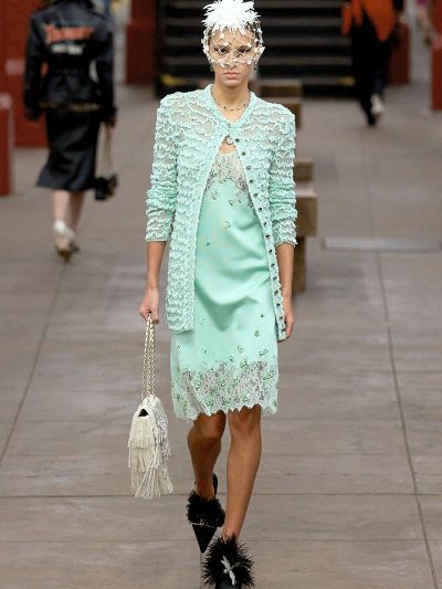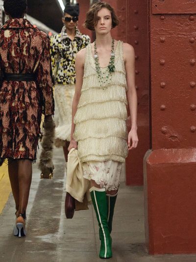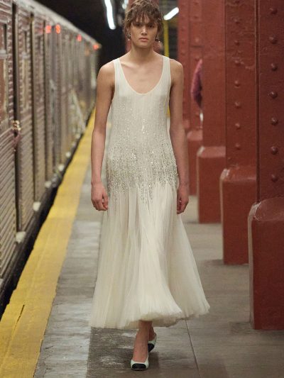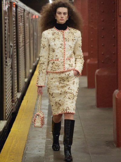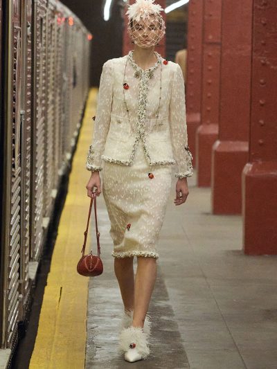 Lần cuối cùng Chanel có một show diễn thực tế ở New York là vào năm 2018, khi giám đốc sáng tạo quá cố Karl Lagerfeld đưa nhà mốt Pháp đến bảo tàng nghệ thuật The Met của New York. Còn bây giờ, Matthieu Blazy lại chọn một ga tàu điện ngầm bỏ hoang ở 168 đường Bowery. Show diễn Chanel Métiers d’Art 2026 quả thật không thể sánh tầm về độ xa hoa với show năm 2018, lại càng bình dị hơn khi so sánh với show Chanel Xuân Hè 2026 đánh dấu màn debut của Matthieu Blazy.