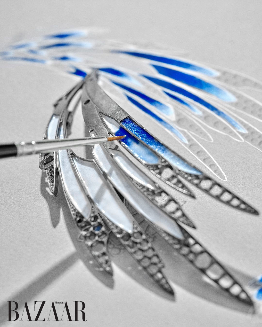 Bộ sưu tập Envol năm 2026 chịu ảnh hưởng sâu sắc từ một cột mốc tinh xảo: đôi cánh kim cương và men xanh trong suốt mà người sáng lập Bảo tàng Whitney kiêm biểu tượng thời trang Gertrude Payne Whitney đã mua tại London vào tháng 5 năm 1910. Tạo tác lịch sử này chính là “bản lề” kết nối quá khứ huy hoàng của thời kỳ Belle Époque với ngôn ngữ thiết kế đương đại trong Envol.