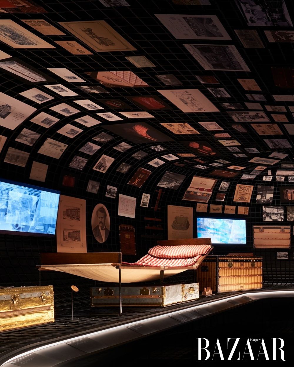Được thiết kế bởi công ty kiến trúc nổi tiếng toàn cầu OMA và Shohei Shigematsu, mỗi phòng trong triển lãm đều mang chủ đề riêng biệt. Bắt đầu từ Trunkscape nói về những chiếc rương kinh điển, rồi Origins trình bày những thiết kế lịch sử từ cuối thế kỷ 19. Sau đó là Iconic Bags, một căn phòng dành riêng cho 5 dòng túi mang tính biểu tượng của thương hiệu là Alma, Keepall, Speedy, Noé và Petite Malle.