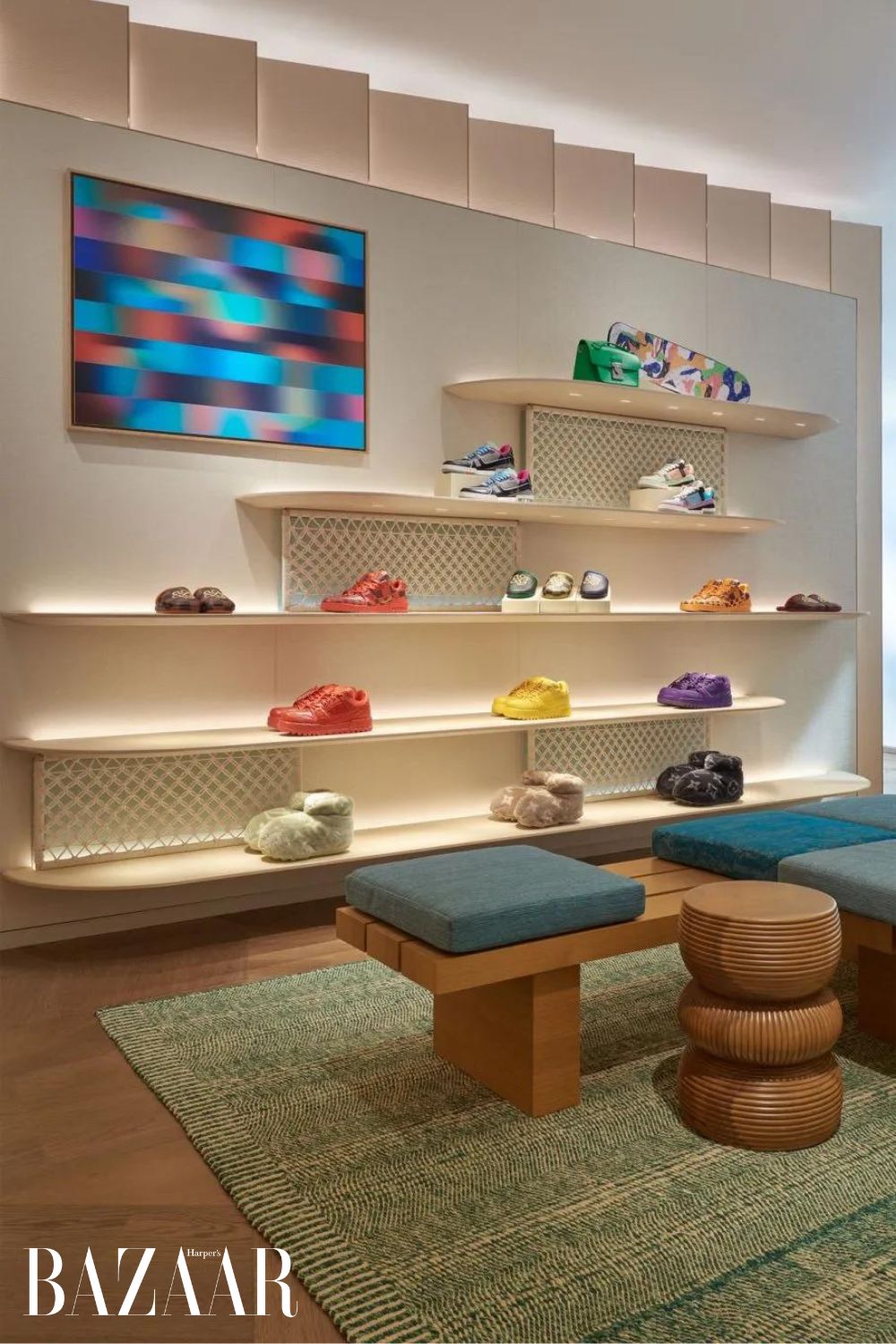 Tầng 2 của LV The Place Bangkok là nơi cho các tín đồ mua sắm. Đặc biệt, để dành sự độc đáo cho cửa hàng concept store ở Thái Lan, Louis Vuitton đã thiết kế riêng một số sản phẩm độc quyền không có ở bất kỳ đâu khác, ví dụ như túi xách Alma Nano Rainbow mùa Cruise 2024 dành cho nữ, hay giày thể thao LV Trainer Upcycling dành cho nam,…