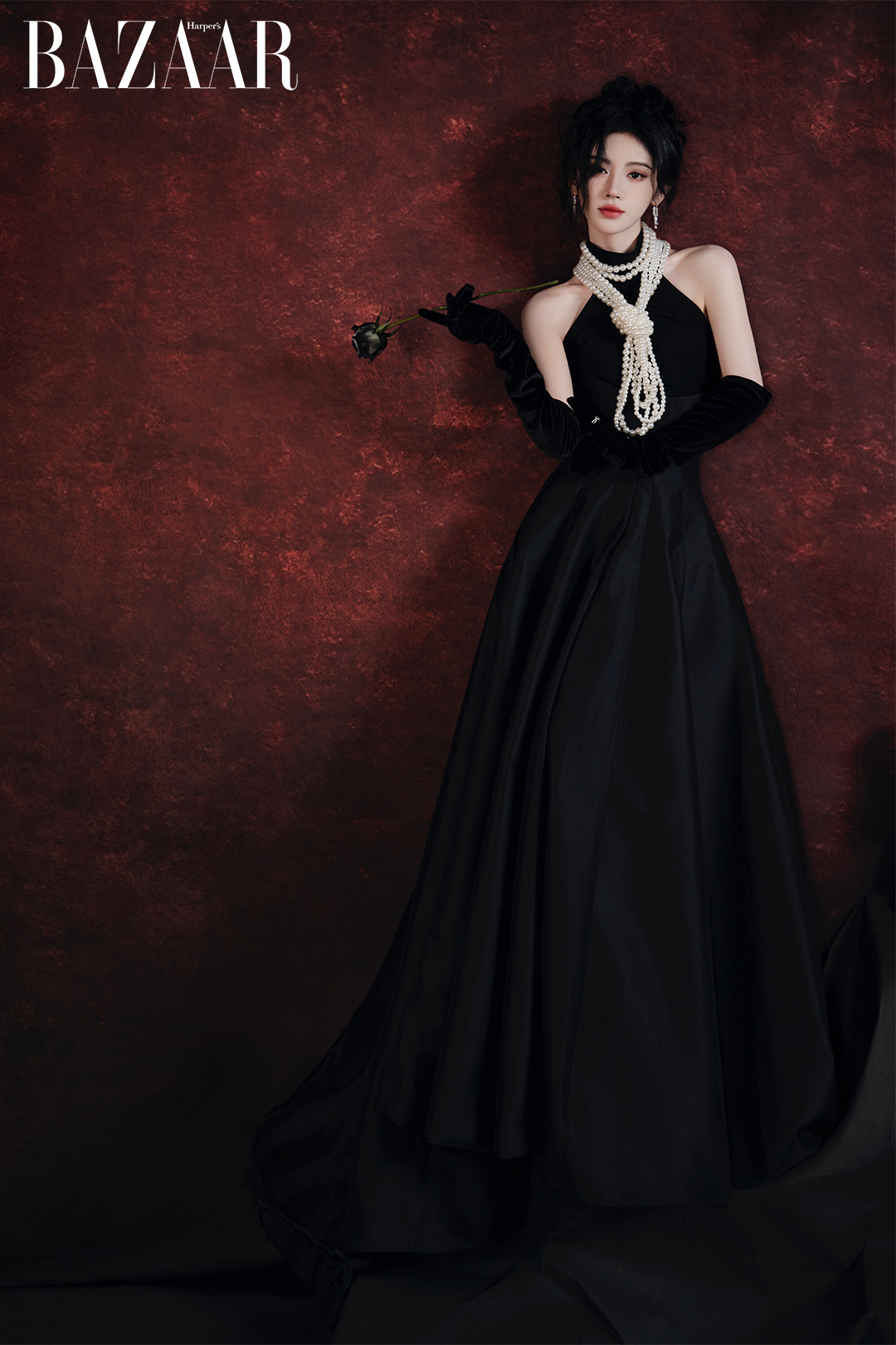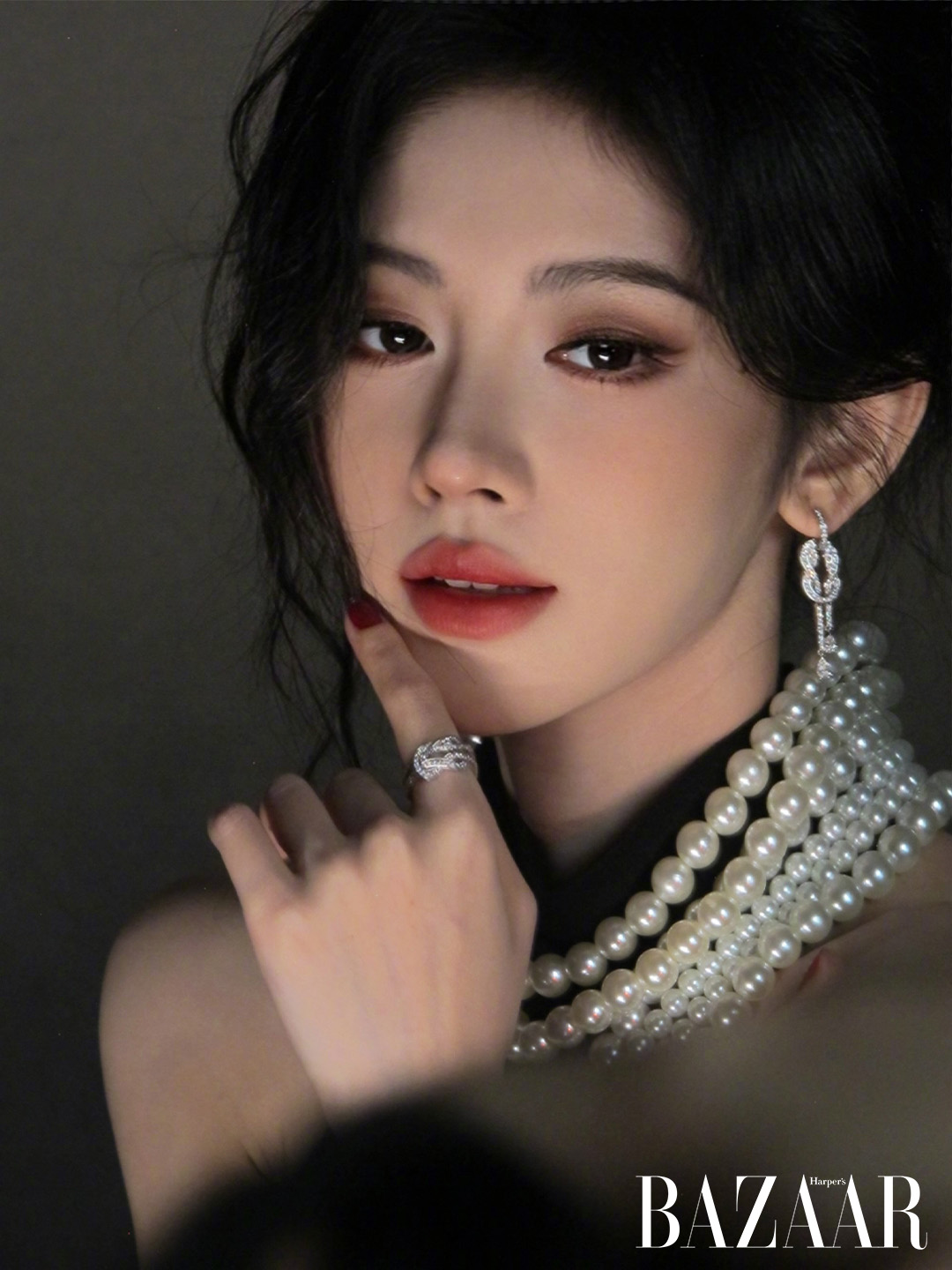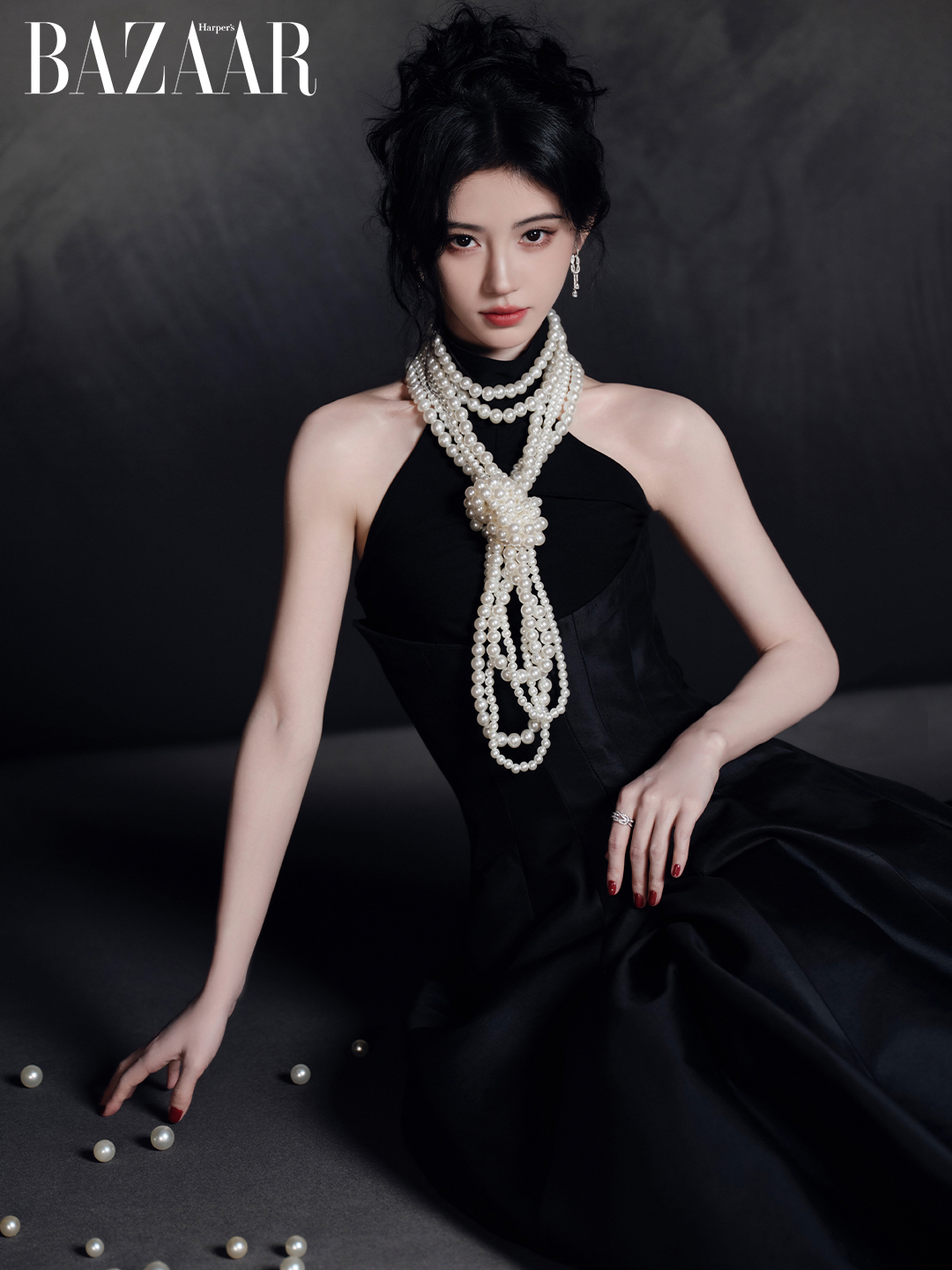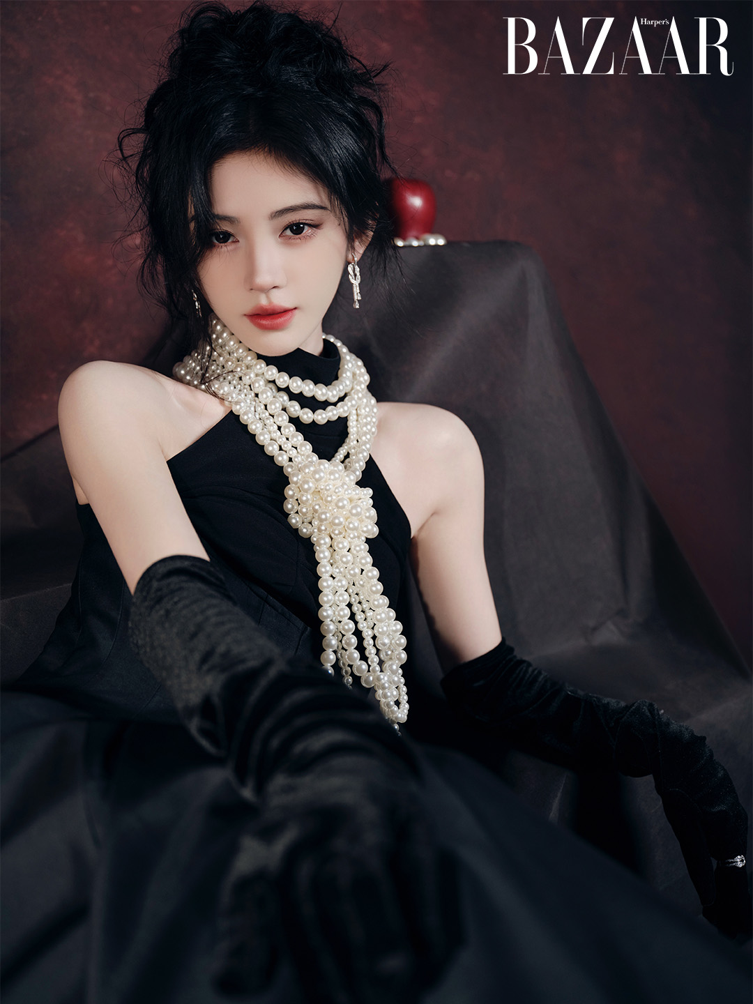 Tham dự Tinh Quang Đại Thưởng 2025, nữ diễn viên mặc chiếc đầm nhung đen cổ yếm, phối cùng chuỗi ngọc trai và hoa tai kim cương từ trang sức FRED, thương hiệu mà Cúc Tịnh Y đang đảm nhiệm vai trò đại sứ khu vực Trung Quốc. Sự giao thoa giữa vẻ cổ điển của ngọc trai và ánh kim cương hiện đại mang đến cảm giác cân bằng hoàn hảo, làm dịu sắc đen trầm, đồng thời thắp lên thứ hào quang lấp lánh.