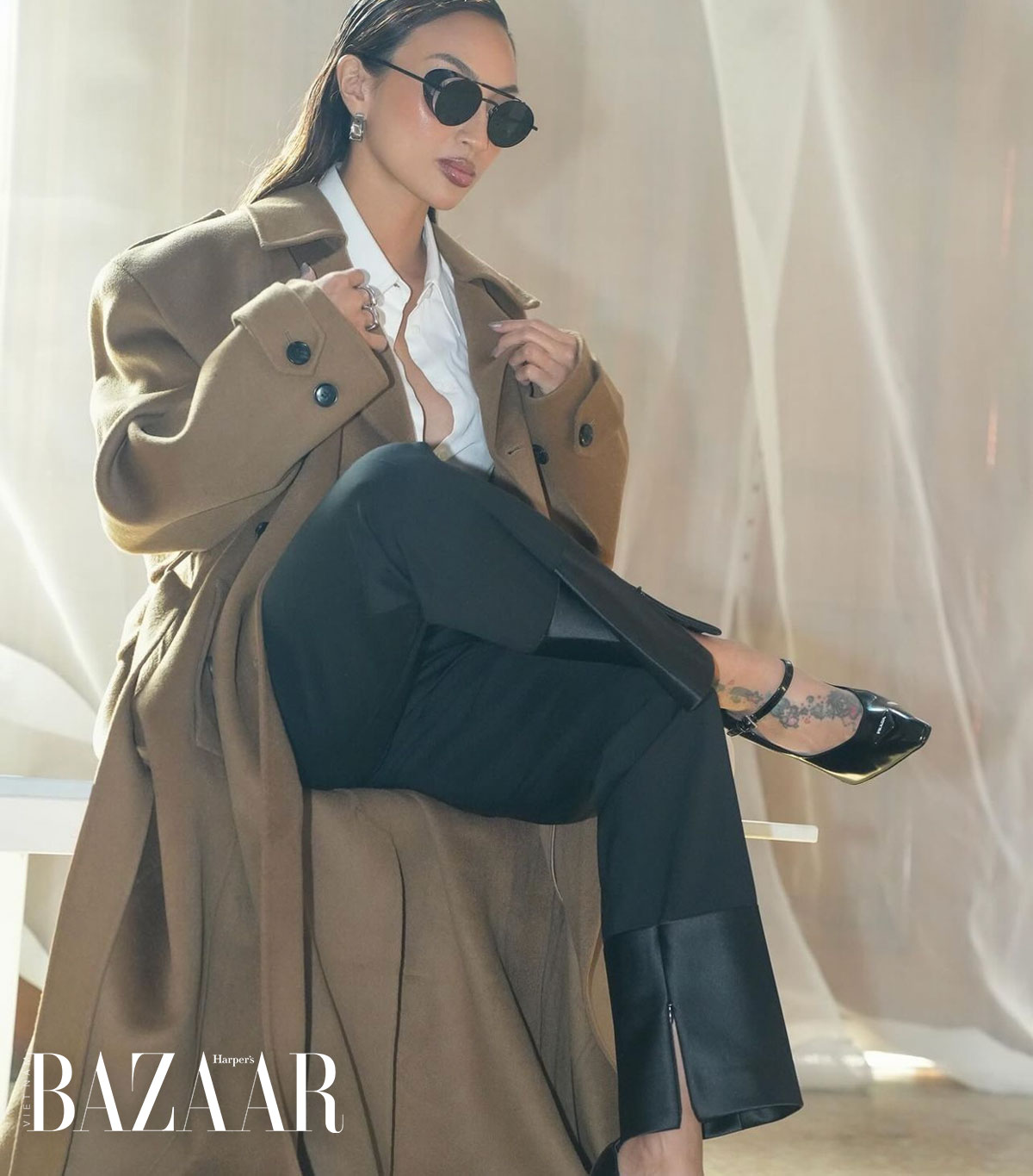 Trên hàng ghế đầu, dõi theo show diễn đầy chăm chú là Jeannie Mai, MC dẫn chương trình truyền hình người Mỹ gốc Việt. MC chương trình thời trang How Do I Look? và chuyên dẫn các nội dung về thời trang như E!, thảm đỏ American Music Awards… cũng ăn vận đồng điệu với các người mẫu trong trang phục màu tối.