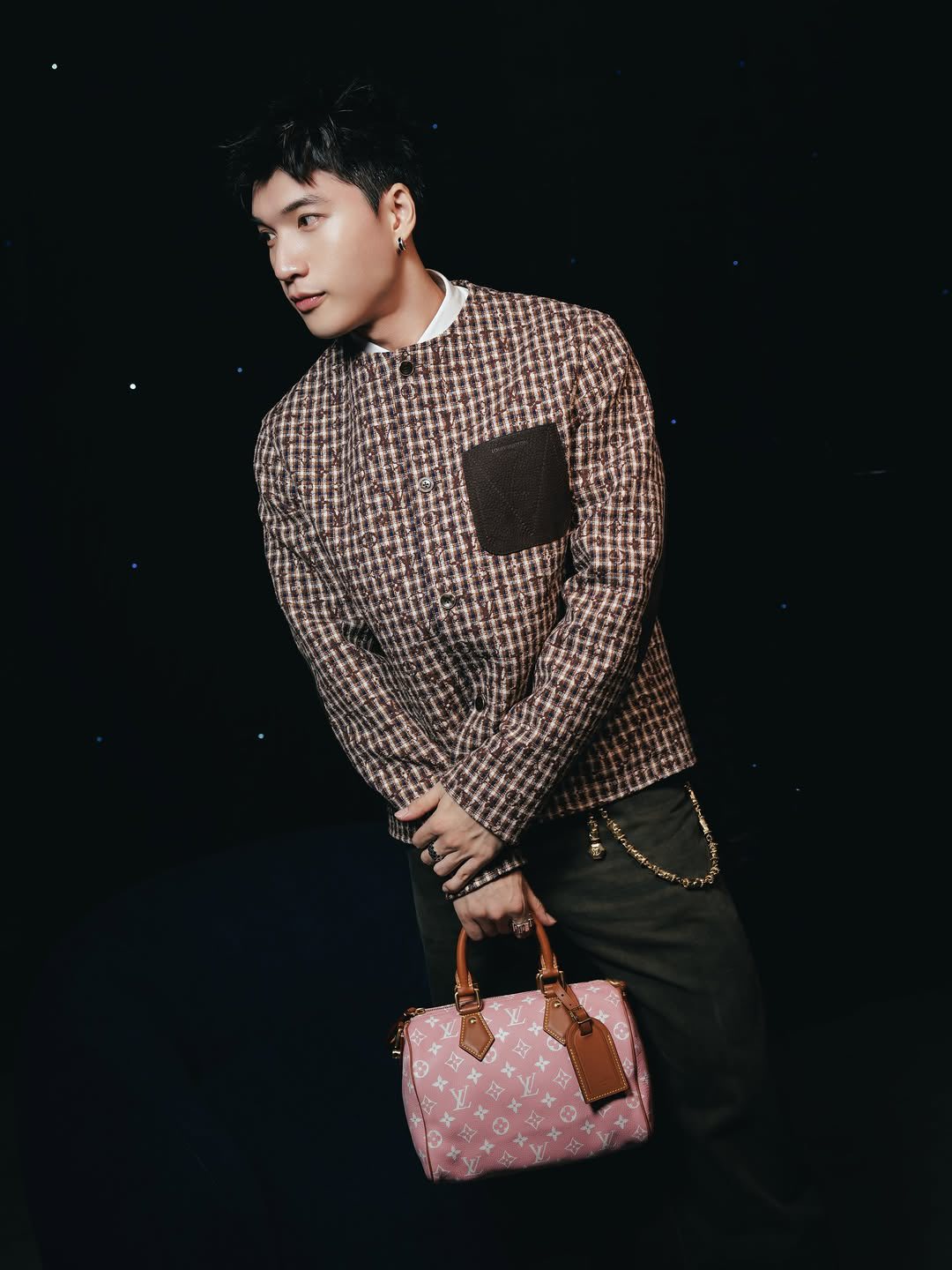 Đặc biệt, chiếc túi xách Speedy P9 Bandoulière 25 tông hồng nổi bật trên tay HIEUTHUHAI trở thành điểm nhấn thị giác, vừa mềm mại vừa phá cách, khẳng định cá tính không trộn lẫn của nam rapper.