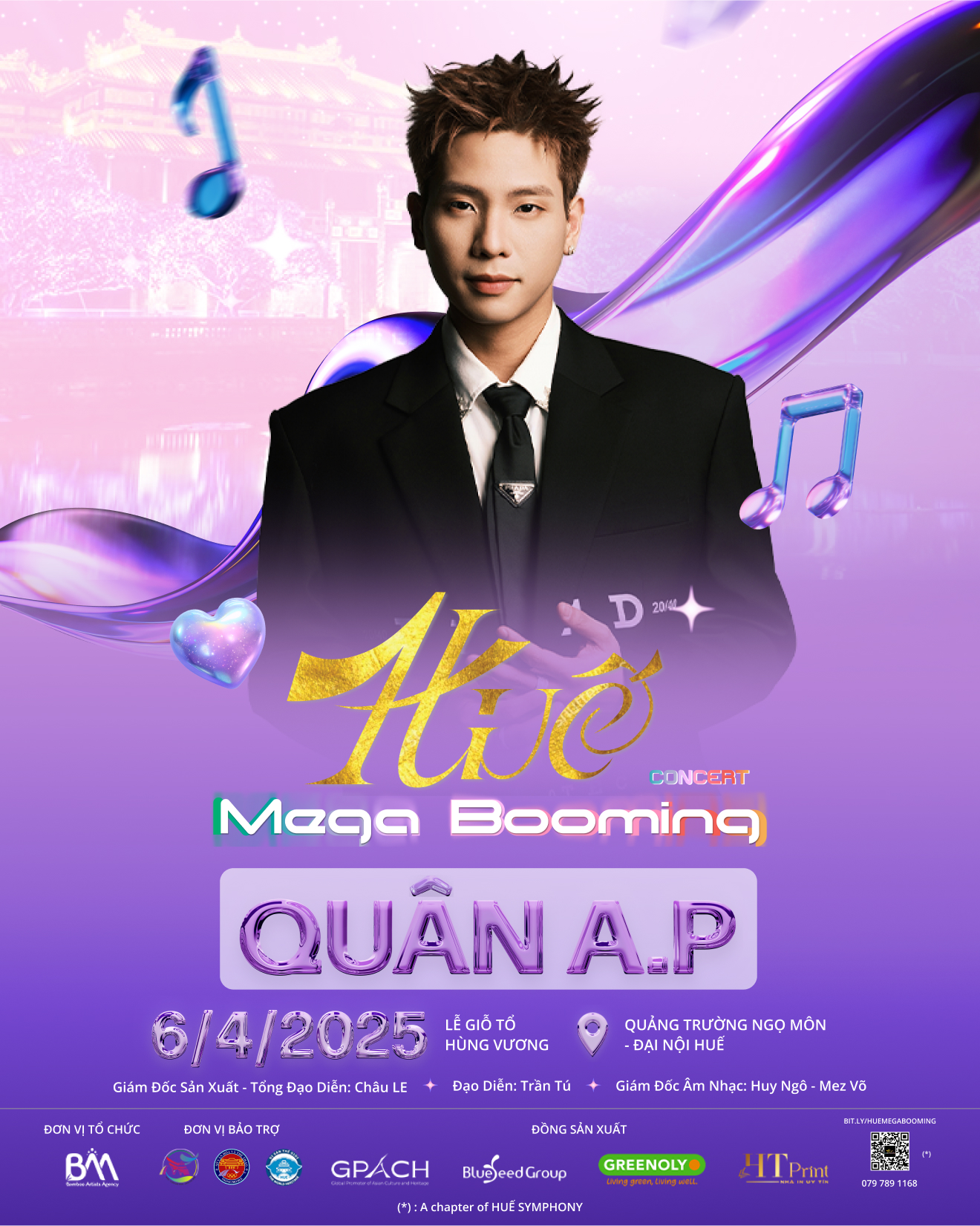 Đại nhạc hội Huế Mega Booming sẽ được tổ chức vào hai đêm 5/4/2025 và 6/4/2025 tại Quảng Trường Ngọ Môn, ngay trước Hoàng thành Huế.