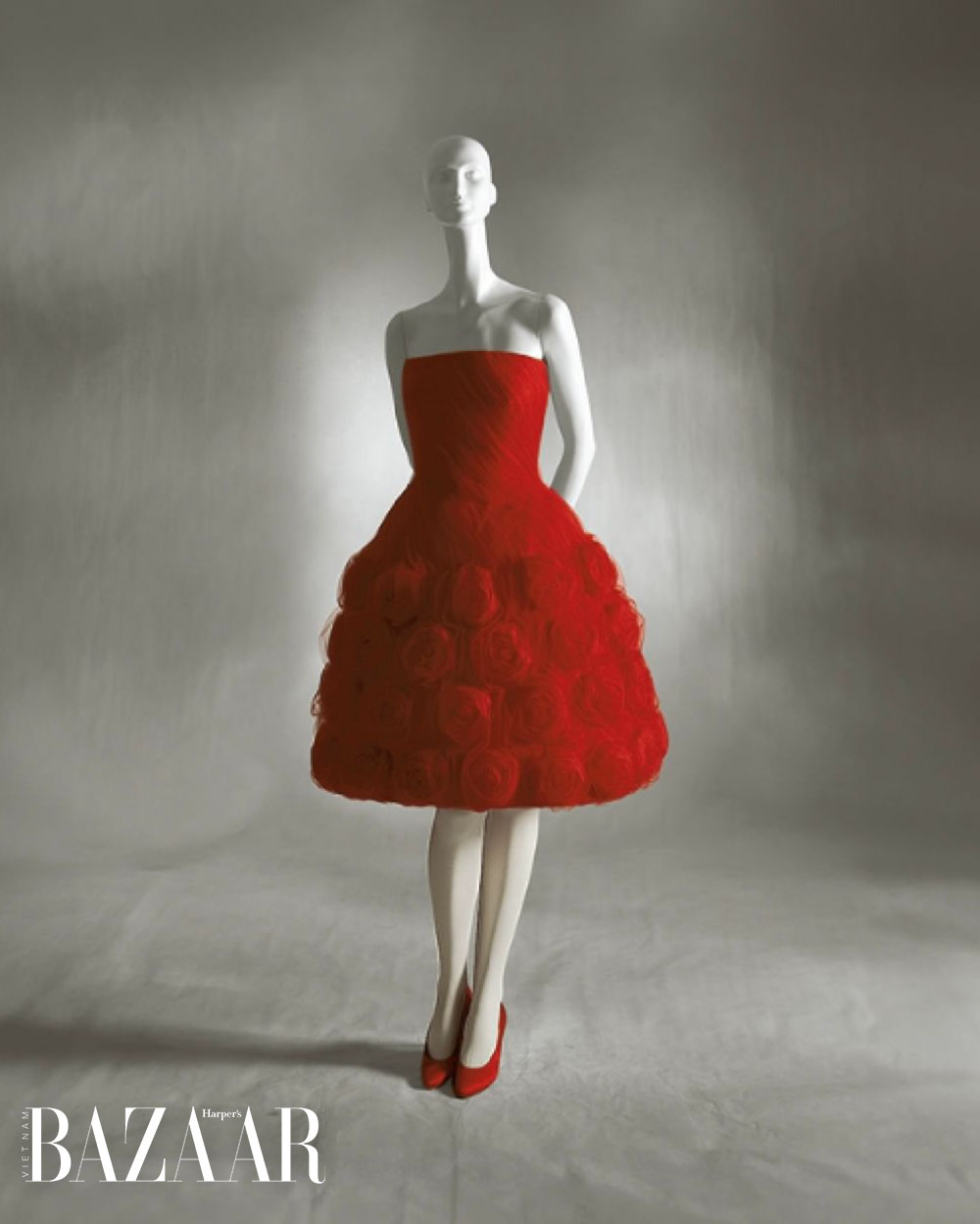 Trong cuộc đời mình, Christian Dior đã thiết kế nên vô vàn những chiếc đầm lấy cảm hứng từ hoa hồng, và rất nhiều mẫu trong số đó đã đi vào lịch sử thời trang cao cấp. Ấy thế nhưng Harper’s Bazaar cho rằng ý nghĩa nhất là chiếc đầm Miss Dior đến từ bộ sưu tập Haute Couture mùa Xuân 1949.