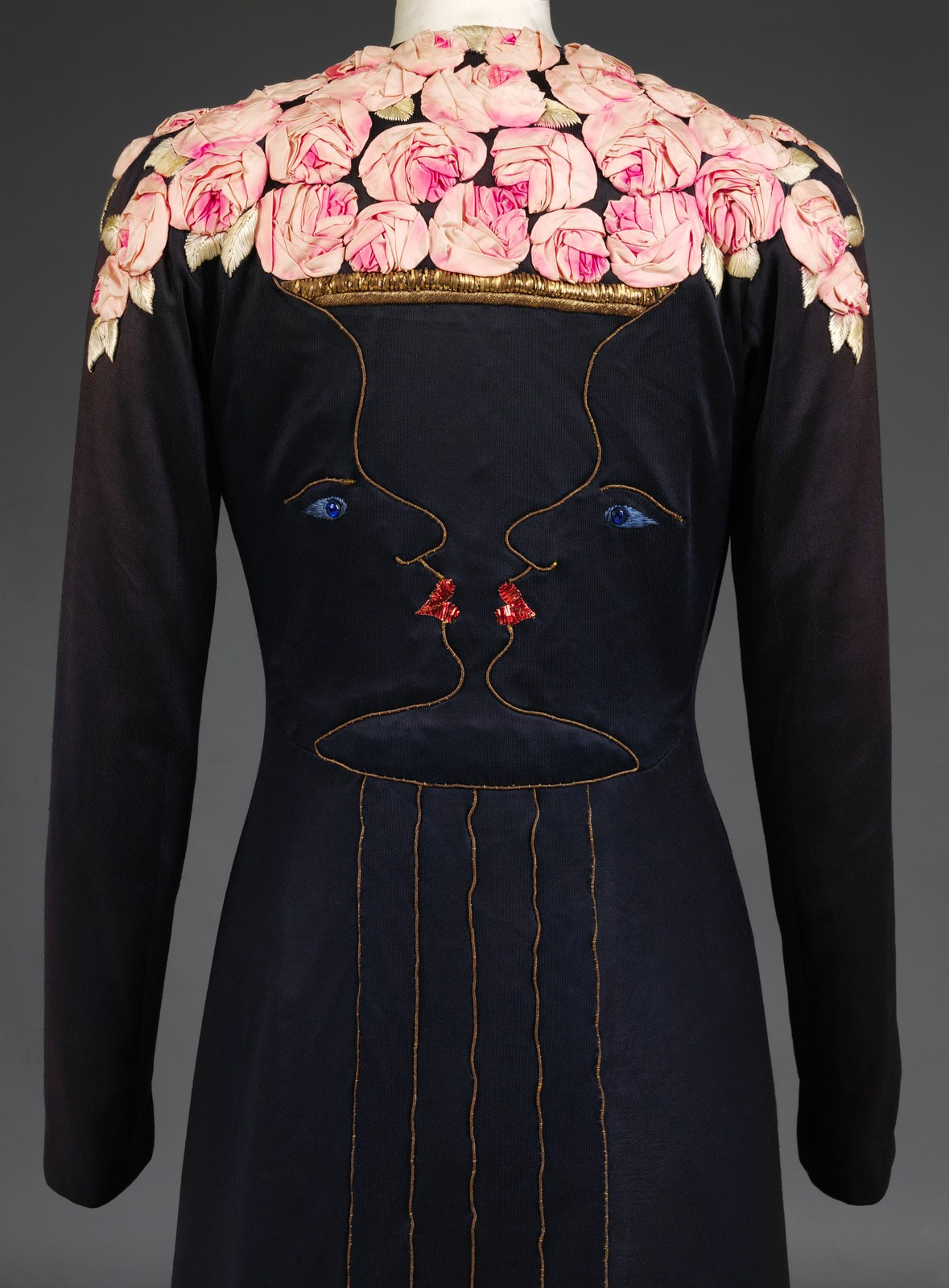 Chiếc áo khoác kể trên là một ví dụ. Đây là tác phẩm liên kết giữa Elsa Schiaparelli và nhà làm phim-nhà thơ-nghệ sỹ Jean Cocteau (1889-1963). Ông đã vẽ bức tranh cho Schiaparelli để bà chuyển hóa thành thiết kế mùa Thu 1937.