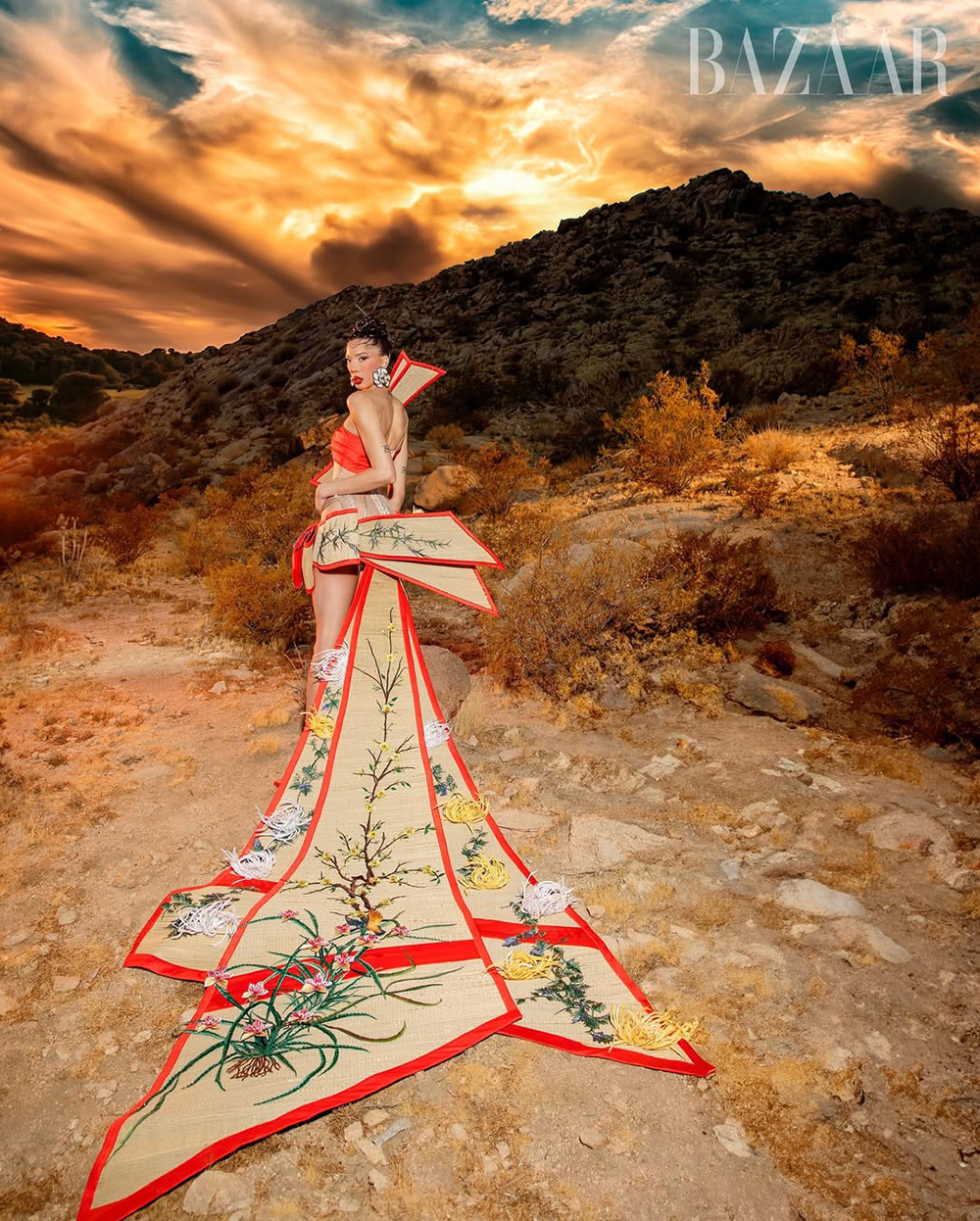 “Thực sự tôi khá bất ngờ khi Daiyaana chọn mẫu đầm của mình để xuất hiện trên trang bìa Harper’s Bazaar Việt Nam. Khi cô ấy đặt mua, tôi hoàn toàn không biết trước điều này”, NTK Đỗ Long chia sẻ.