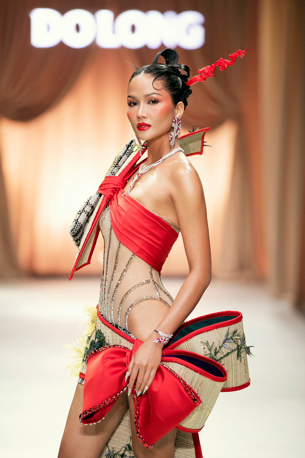 Thiết kế mà Daiyaana lựa chọn được Đỗ Long ra mắt trong show diễn Giai Nhân vào tháng 5/2024. Mẫu đầm này cũng từng gây chú ý khi được nàng hậu H’Hen Niê diện trong vai trò vedette của show diễn.