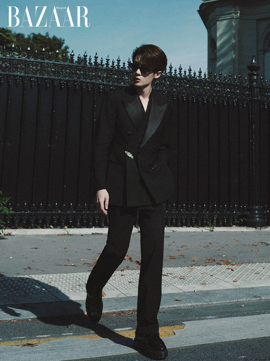 Mỗi bước chân của Đàn Kiện Thứ trong đôi giày Roger Vivier tựa như dẫn người xem đi qua một cuộc đối thoại giữa di sản và hiện đại. Áo khoác dáng dài, giày cổ điển, chi tiết kim loại biểu tượng, tất cả trở thành đường dẫn để anh kể câu chuyện cá tính của bản thân, đầy tự tin nhưng không phô trương.