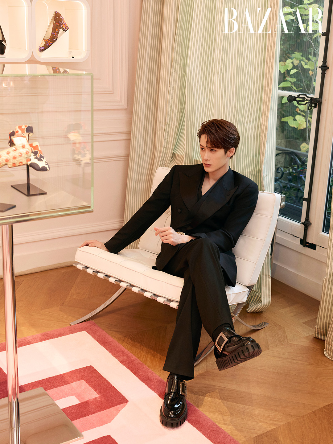 Đàn Kiện Thứ xuất hiện như hình tượng quý ông của thời đại mới: không bó buộc giới hạn, không tuân theo khung mẫu cổ điển, nhưng vẫn giữ trọn sự mềm mại và tinh tế vốn là DNA của Roger Vivier.