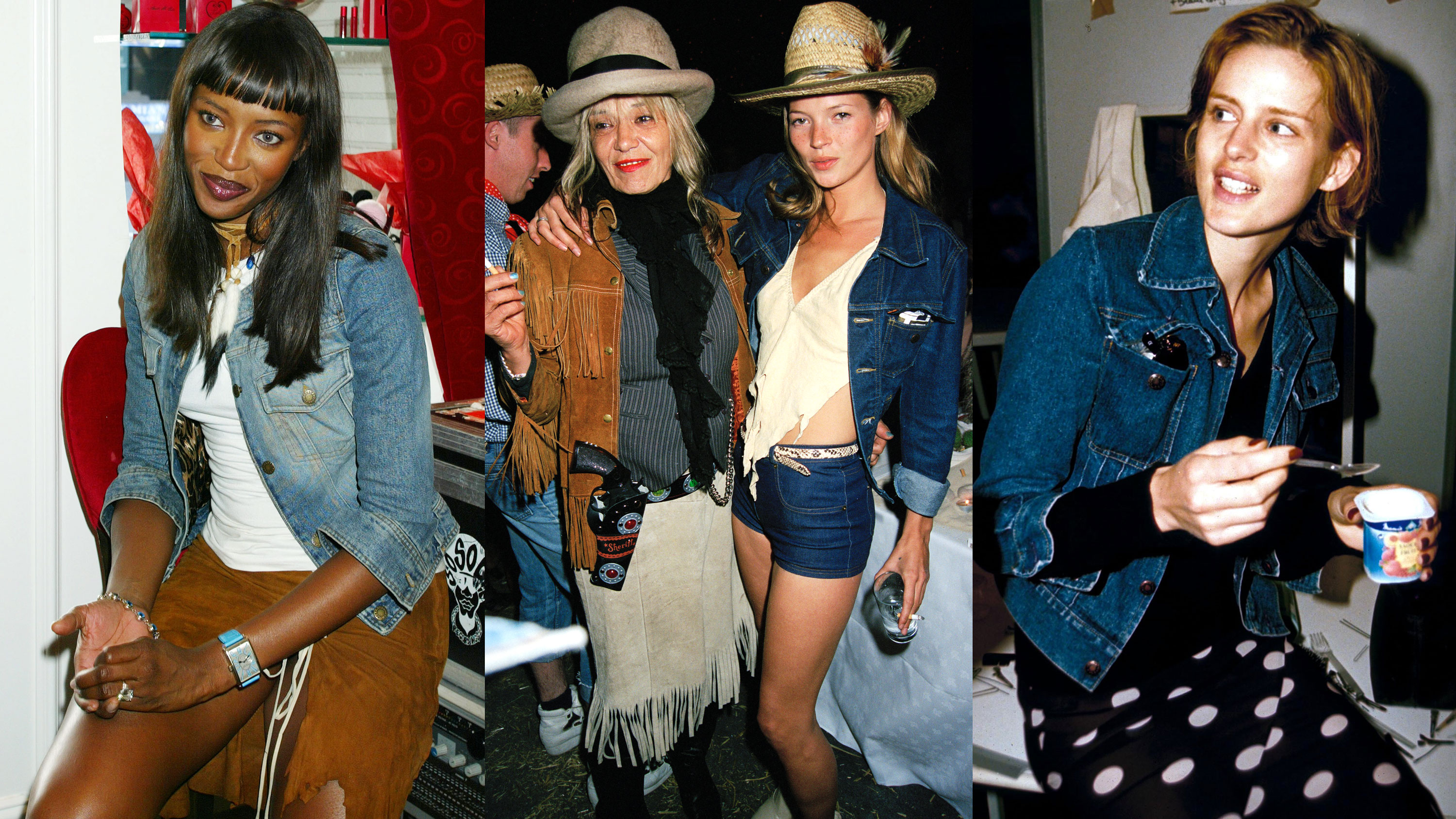 Chiếc áo khoác denim trở thành “đồng phục” bên ngoài sàn diễn của các siêu mẫu nổi tiếng thập niên 1990 như Naomi Campbell, Kate Moss, Stella Tennant. Hình ảnh model-off-duty, những người mẫu rời show diễn dạo phố trong những chiếc áo khoác denim vẫn phổ biến trong các tấm ảnh street style ngày nay.