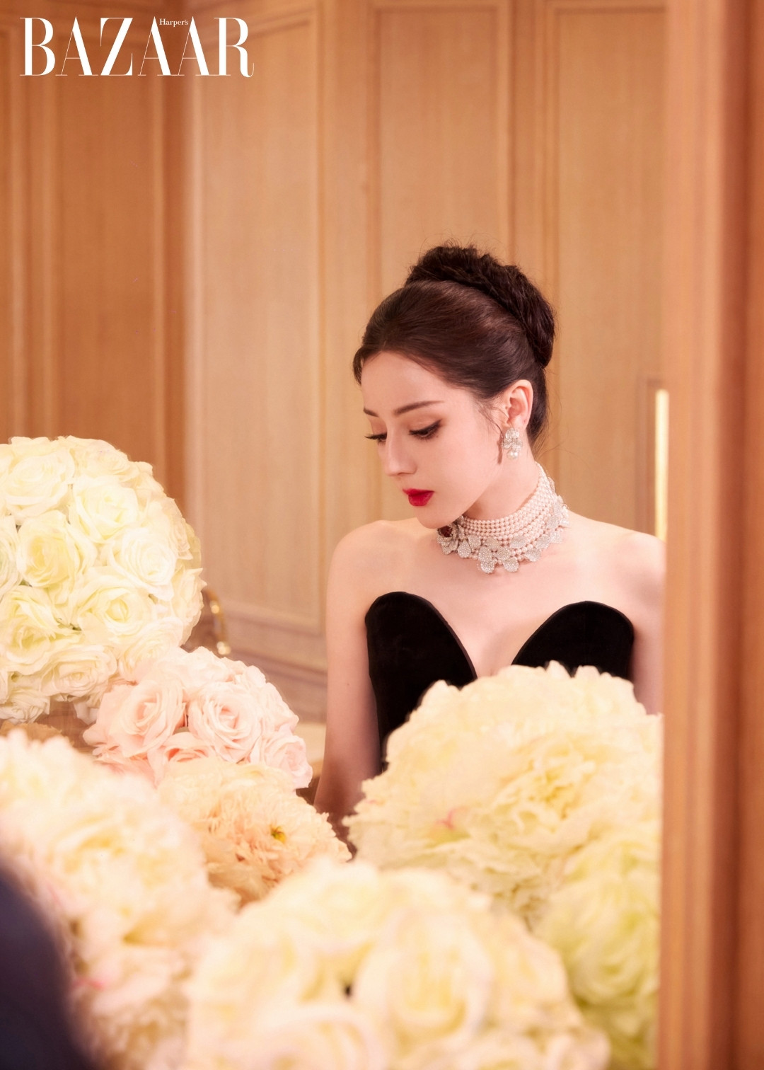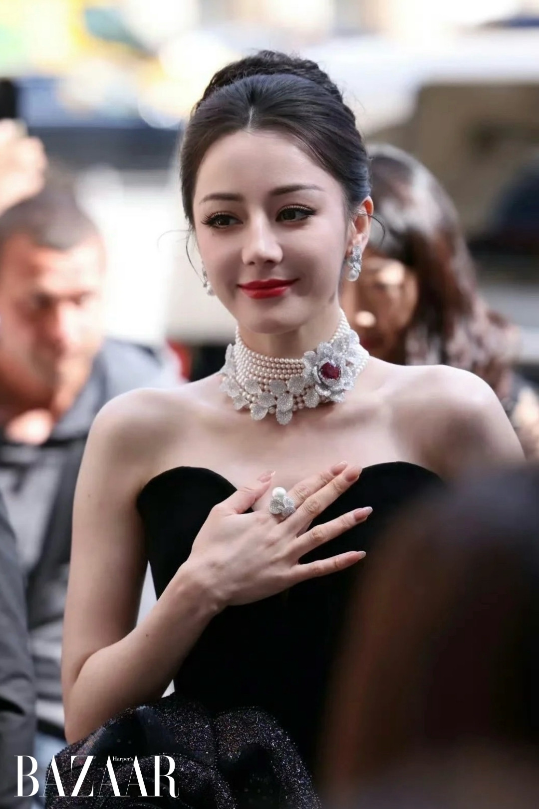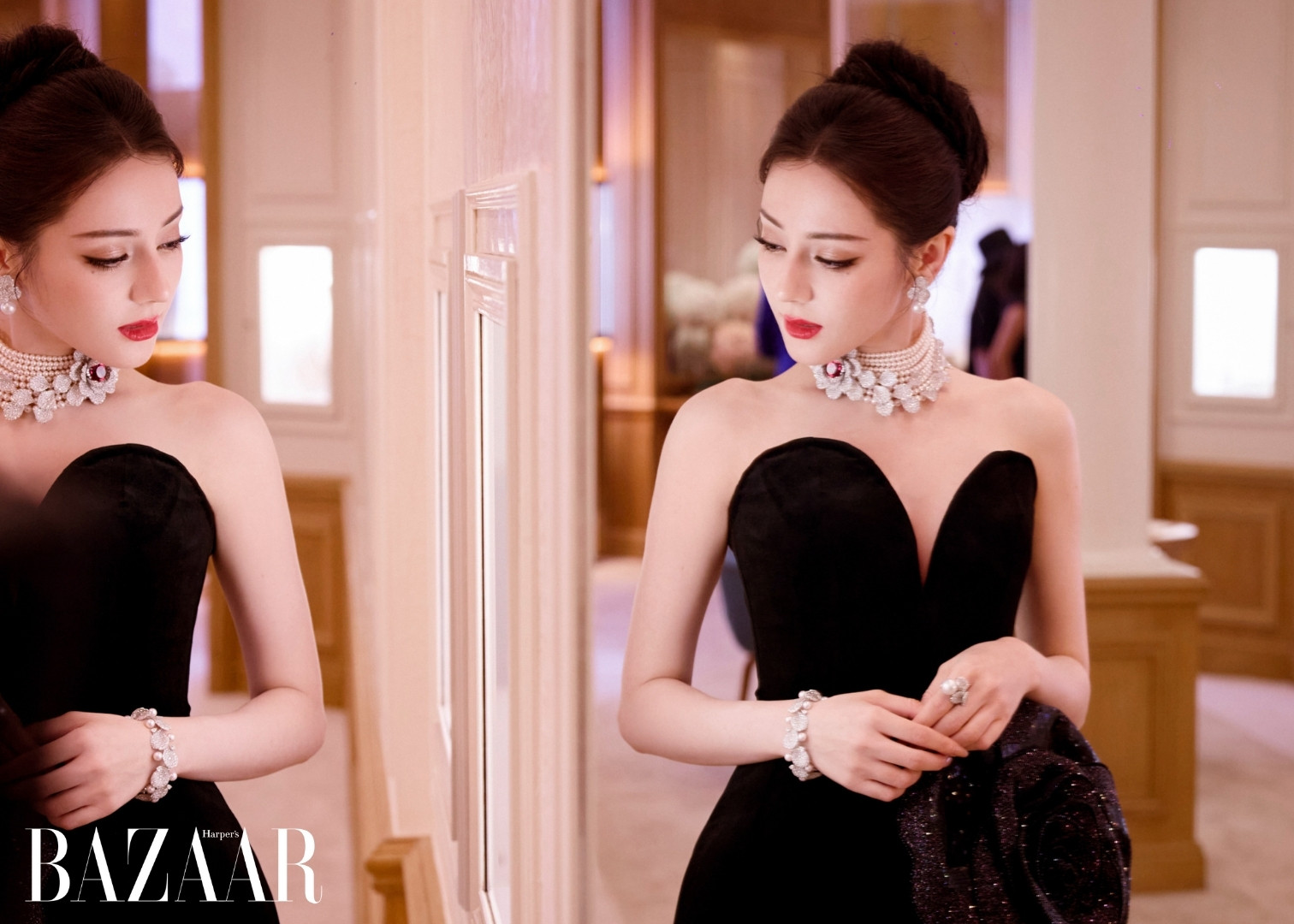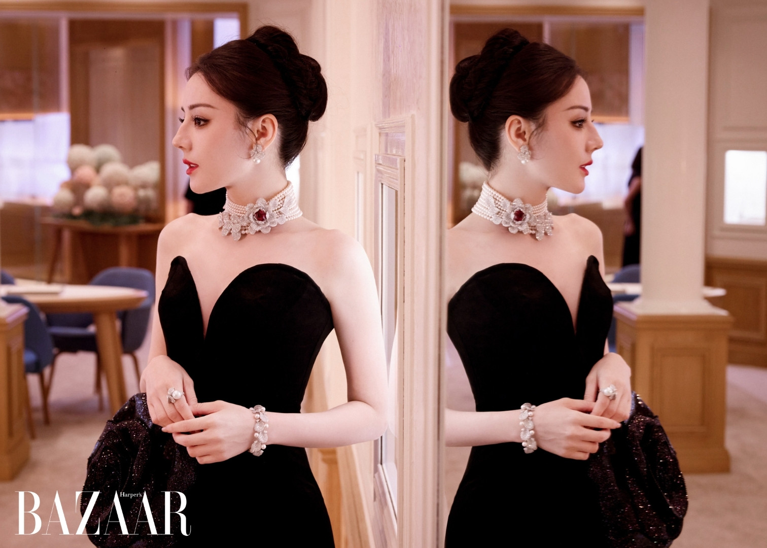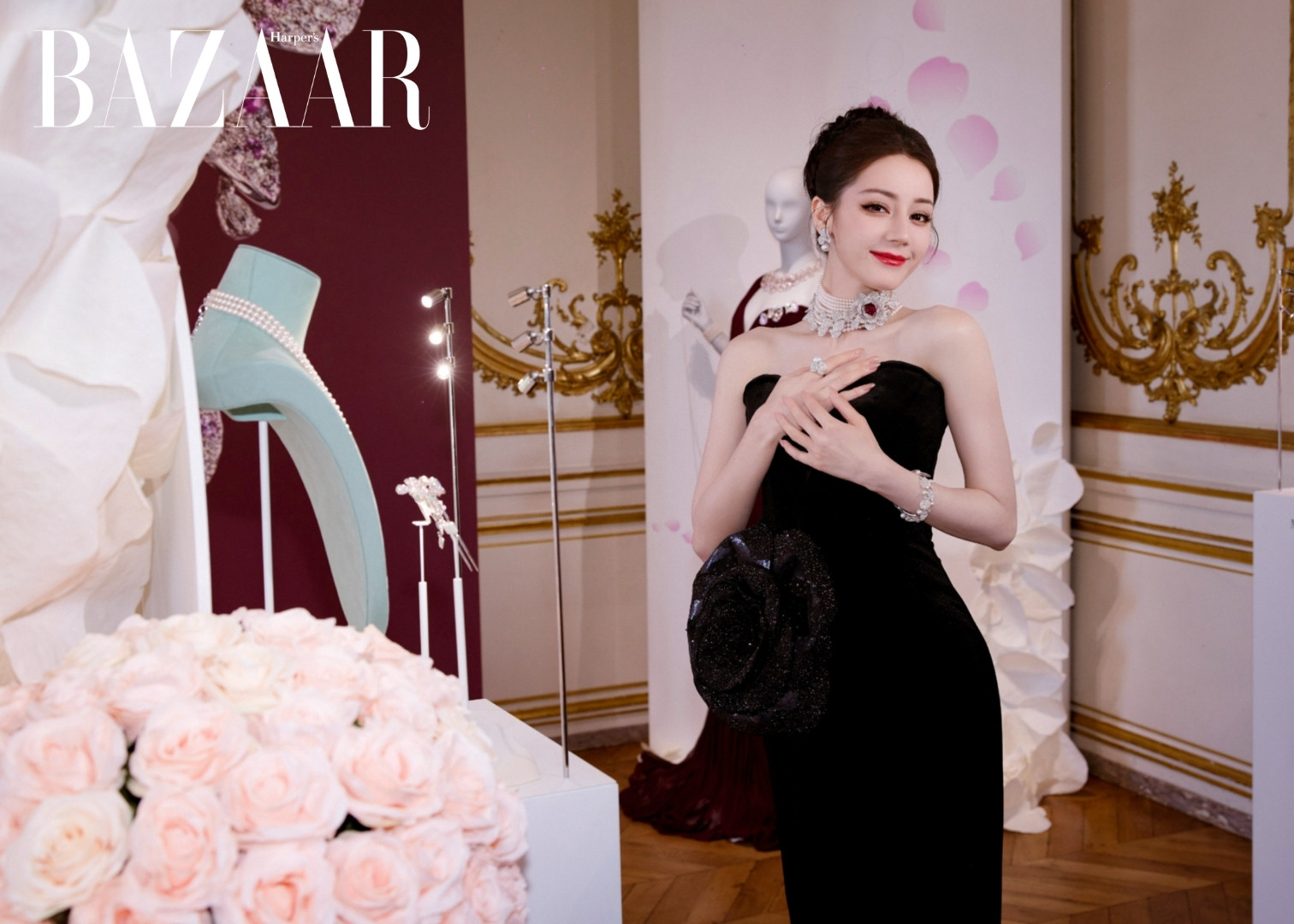 Tại khách sạn Hôtel d’Évreux, quảng trường Place Vendôme, Paris, Địch Lệ Nhiệt Ba khiến giới mộ điệu trầm trồ ngay từ giây phút đầu tiên bước ra sảnh lớn. Cô mặc chiếc đầm nhung đen cúp ngực đính hoa hồng, phản ánh hình ảnh nên thơ của bộ sưu tập trang sức cao cấp Les Pétales của Mikimoto – “Les Pétales” có nghĩa là những cánh hoa.