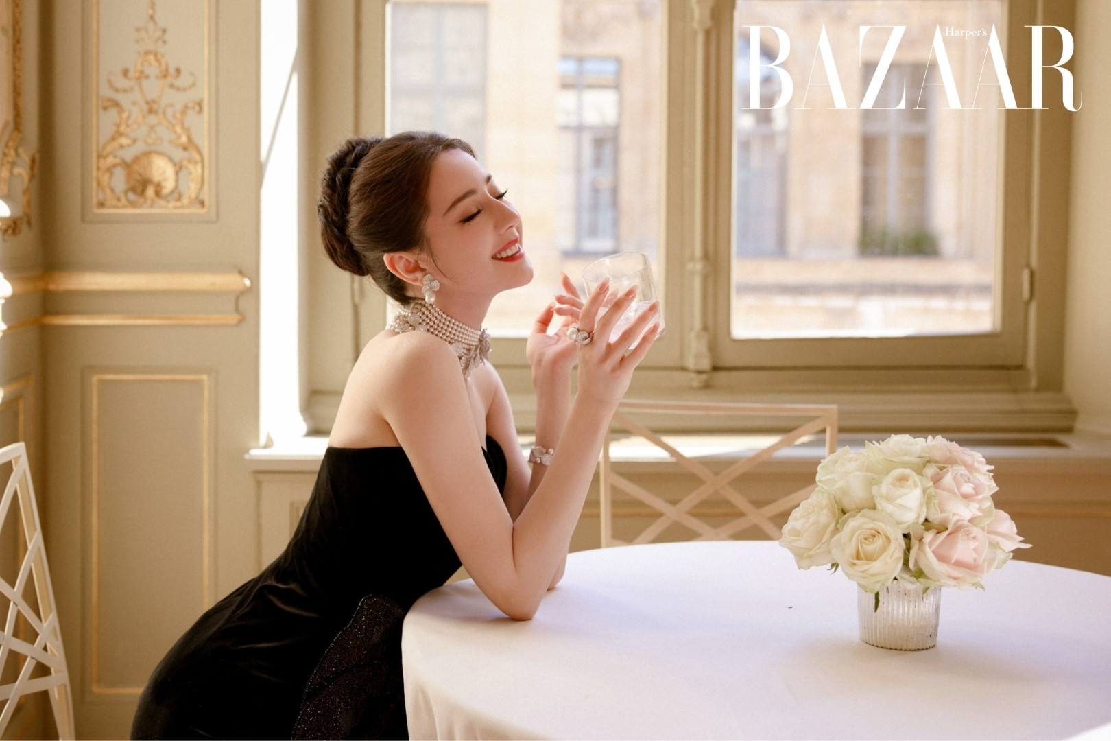 Đại diện cho vẻ đẹp ngọt ngào mà hiện đại, mềm mại bọc lấy sự sắc sảo của bộ sưu tập Les Pétales chính là nữ đại sứ toàn cầu Địch Lệ Nhiệt Ba. Ở sự kiện tại Paris, cô là khách mời danh dự, ngồi hàng ghế trung tâm, diện trọn bộ trang sức cao cấp mà Mikimoto chưa từng công bố đến công chúng.