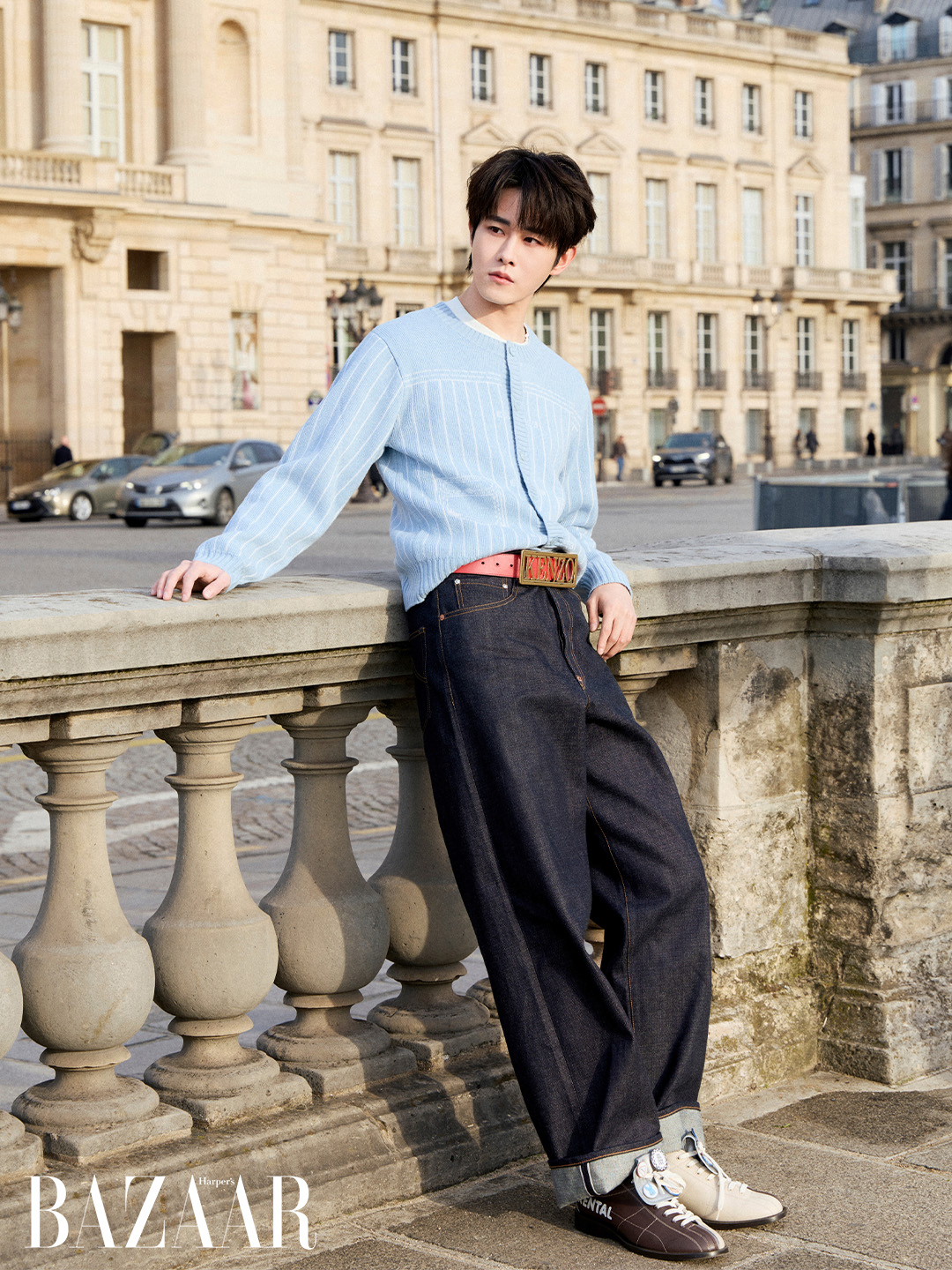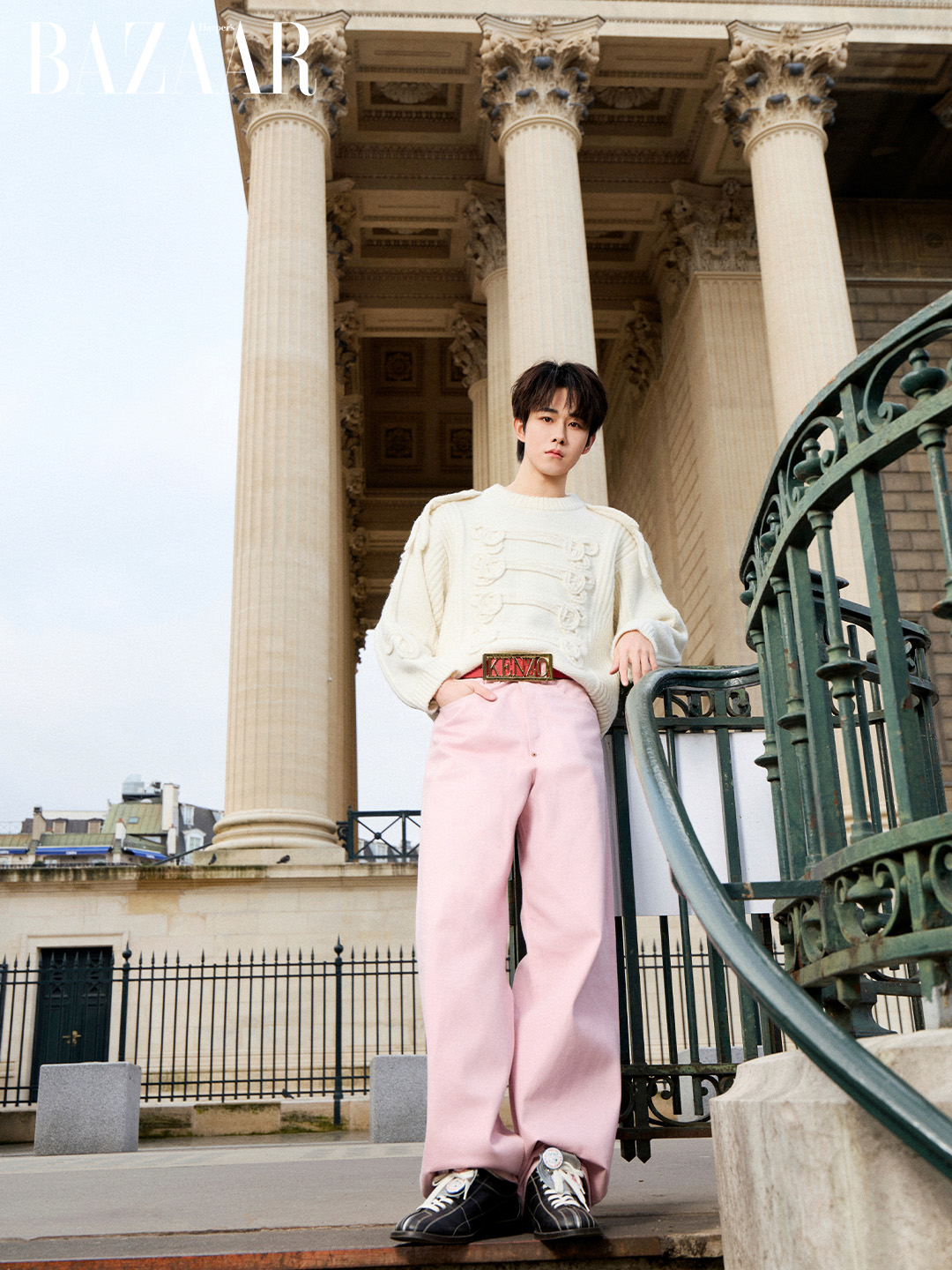 Điền Gia Thụy xuất hiện trong các thiết kế thuộc bộ sưu tập Xuân Hè 2026, nơi tinh thần tự do của Kenzo được thể hiện qua patchwork, cấu trúc layering và những chi tiết mang tính nhận diện như khuy thắt Brandenburg. Các thiết kế không áp đặt cá tính, mà tạo điều kiện để người mặc tự điều chỉnh nhịp điệu hình ảnh.