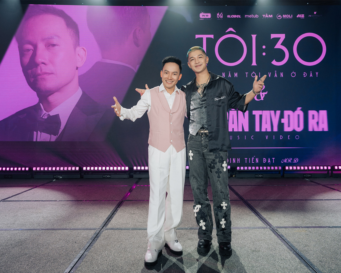 Rapper Đinh Tiến Đạt bên Cường 7 tại buổi ra mắt EP Tôi 30 – 30 năm tôi vẫn ở đây