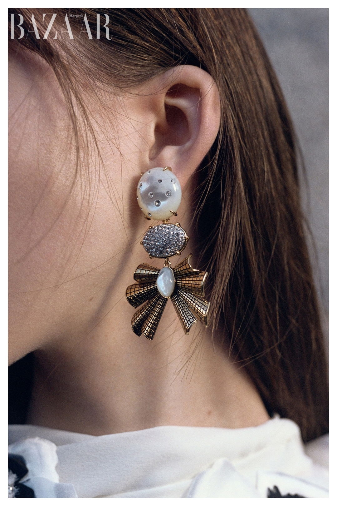 Với một người quan tâm đến những tiểu tiết như Jonathan Anderson, phụ kiện, trang sức chính là thiên đường cho sự sáng tạo của anh. Những trang sức ánh vàng như có sức sống và sự mềm mại khác biệt khi được tạo hình theo đoá cẩm tú cầu, chú bọ rùa may mắn, nơ… vận dụng đa chất liệu như những mảnh pha lê thô, ngọc trai cabochon…