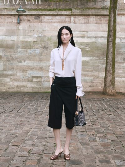 Thắt lưng với đai kim loại hình gương thắt nơ quá xinh xắn để bạn đắn đo. Jonathan Anderson còn giới thiệu loạt giày, túi đáng mơ ước. Giày – từ loafer, sandal, mule đến pump hở mũi – cùng các mẫu túi – từ Dior Médaillon, Lady Dior, Dior Cigale đến Dior Crunchy – mở rộng biên độ phong cách của Dior lẫn hội tín đồ yêu thích nhà mốt.
