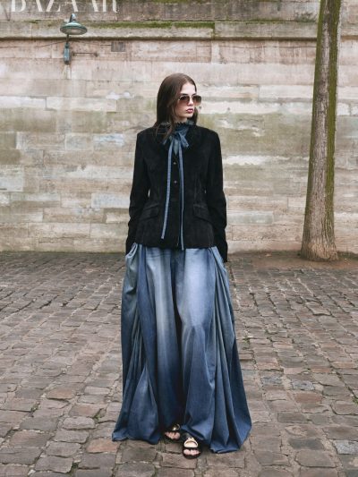 Cũng thật dễ để phải lòng những chiếc quần jeans với tỉ lệ và độ bung xoè của một chiếc đầm dạ hội couture khi chúng vừa biết cách hướng sự chú ý đến chủ nhân bằng phần nhìn ngoạn mục, vừa cùng họ băng qua một ngày bận rộn thật dễ dàng với chất liệu denim được cải tiến siêu nhẹ.
