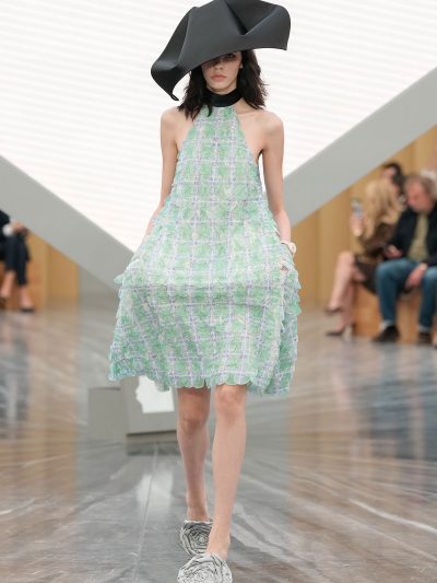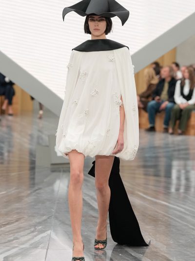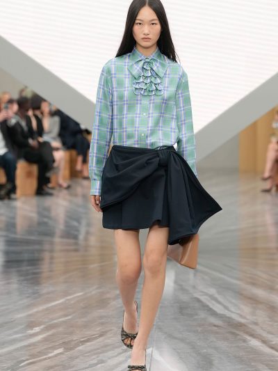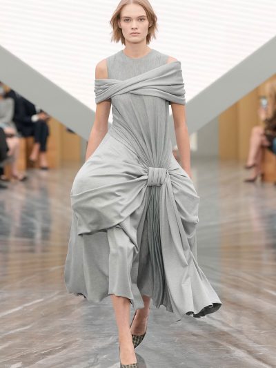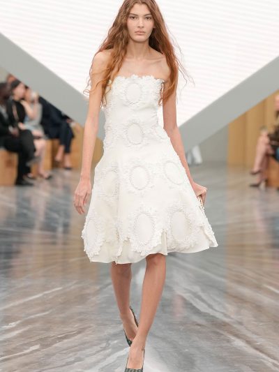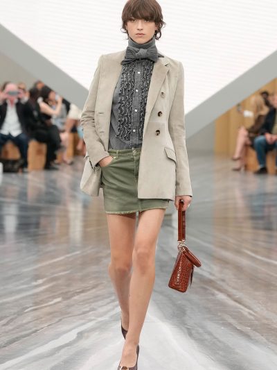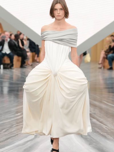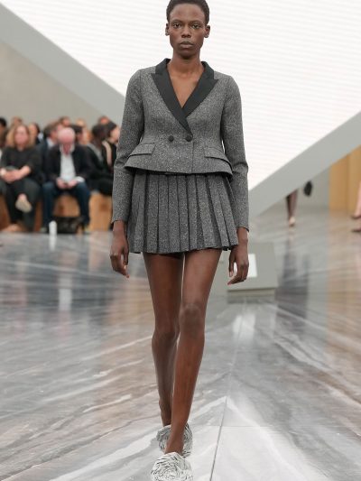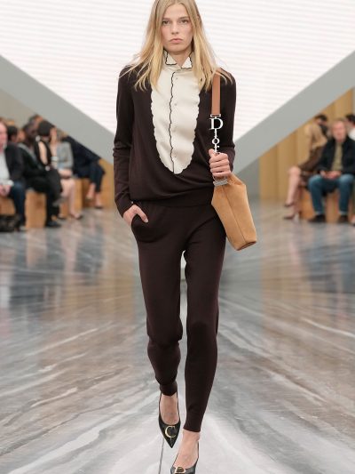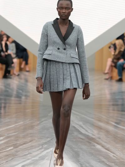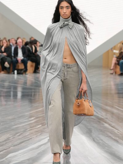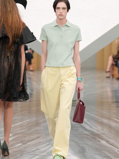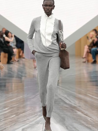 Quả thật, thoạt nhìn, các thiết kế từ bộ sưu tập Dior Xuân Hè 2026 trông chẳng có vẻ gì giống Dior. Nhưng khi nhìn kỹ, bạn sẽ thấy chiếc áo khoác Bar Jacket vẫn ở đó, nhưng được làm mới với cut out ở eo, khiến phần thân trước của chiếc áo trông giống một chiếc nơ to bản. Form dáng New Look cũng còn ở đó, dù không thắt chặt eo quá đà như trước, tiếp nối tinh thần nữ quyền mà Maria Grazia Chiuri đã mang lại cho nhà mốt.