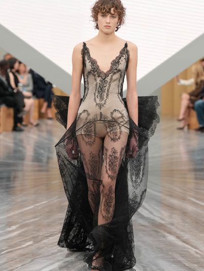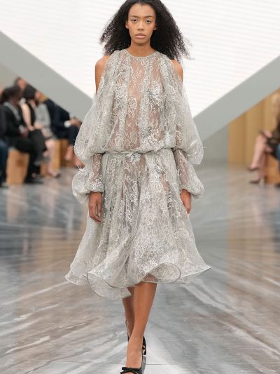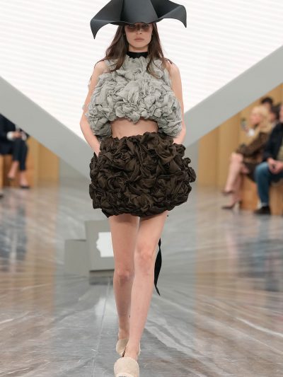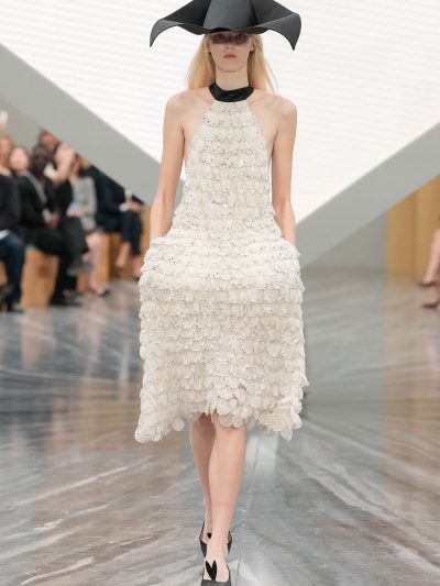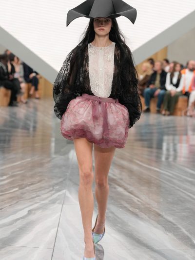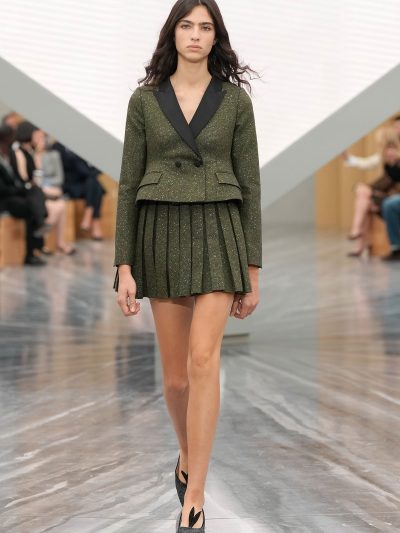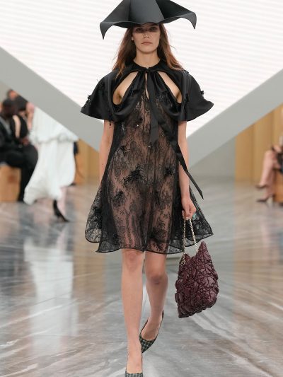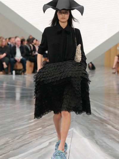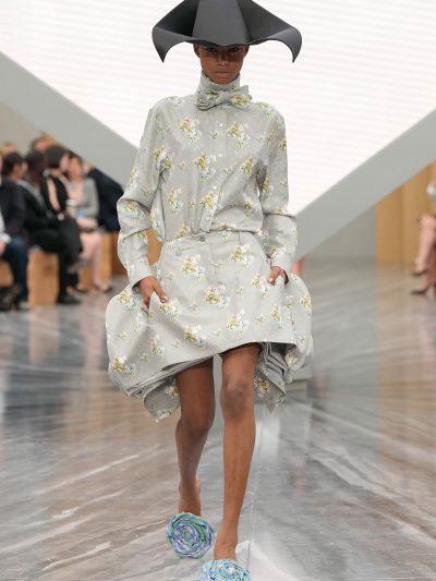 Các thiết kế còn đặc biệt tôn vinh lịch sử nước Pháp. Form dáng đầm pannier ưa thích của Marie Antoinette đã được Jonathan Anderson biến tấu thành đầm dạ hội hiện đại. Trên sàn diễn, người mẫu xuất hiện với chiếc mũ gợi nhắc đến kiểu mũ ba múi (do Stephen Jones thực hiện), còn trên hàng ghế front row, Châu Dã và Đặng Vi xuất hiện với trang phục có nút trang trí như vay mượn từ quân phục thời xưa.