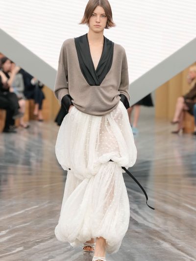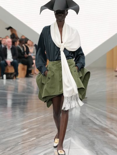 Với bản thân Harper’s Bazaar Việt Nam, chúng tôi cũng nhìn thấy sự tương đồng với thời kỳ của cựu giám đốc sáng tạo John Galliano. Bởi cả hai đều biến sàn diễn thành một sân khấu kịch tính và đầy nghệ thuật – dù John Galliano thích sân khấu trang trí hoa mỹ còn Jonathan Anderson hướng về sự tối giản. Trang phục, khi xuất hiện trên sàn runway, được phối kết rườm rà và phức tạp. Nhưng khi tách ra thành những item lẻ, chúng lại trở nên dễ mặc đến lạ thường.