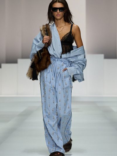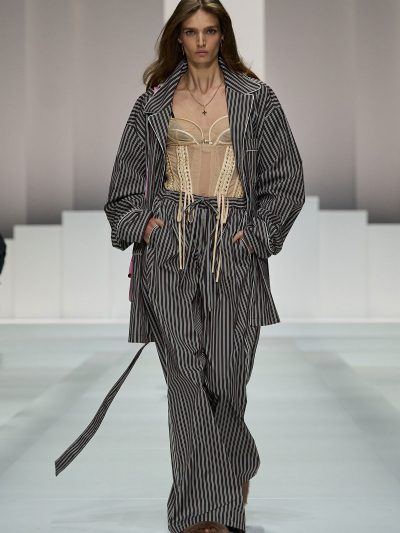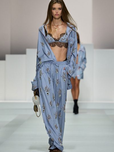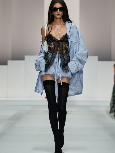 Sàn diễn Dolce & Gabbana Xuân Hè 2026 là một bữa tiệc đồ ngủ (pyjama party) chính hiệu. Show diễn này cũng là một phần nối dài của bộ sưu tập thời trang nam mà thương hiệu Ý đã ra mắt ở tuần lễ thời trang nam hồi tháng 6/2025 vừa qua. Hai nhà thiết kế cho biết rằng hậu show diễn đó, nhiều khách hàng của họ đã liên hệ và phàn nàn vì sao không có phiên bản cho nữ. Domenico Dolce và Stefano Gabbana đã không để khách hàng nữ thất vọng.
