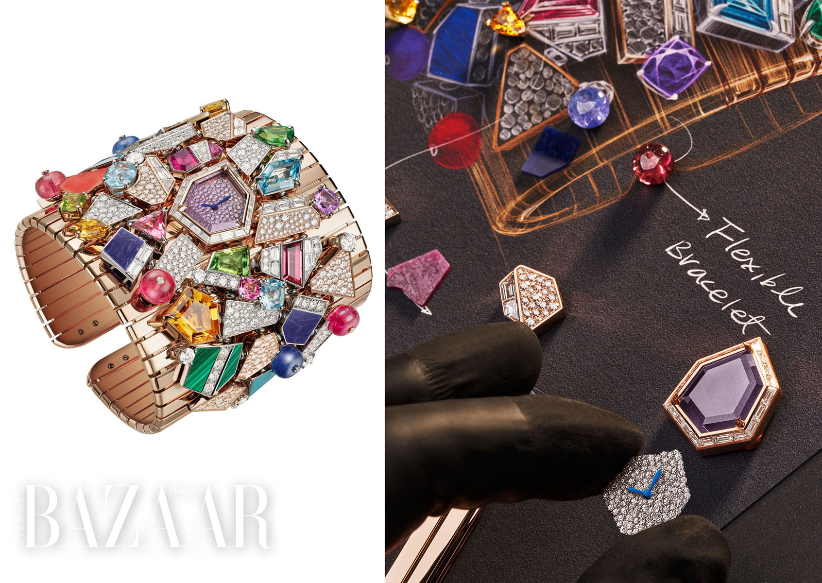 Tận từ thập niên 1950, BVLGARI đã mai mối đồng hồ và trang sức cao cấp. Nhà kim hoàn nước Ý dùng những viên đá quý quý giá để trang hoàng cho các cỗ máy trên cổ tay. Năm nay, trong bộ sưu tập đỉnh sức (high jewelry) Polychroma của BVLGARI, các mẫu đồng hồ cao cấp (high watchmaking) tiếp tục đóng một vai trò trọng tâm.