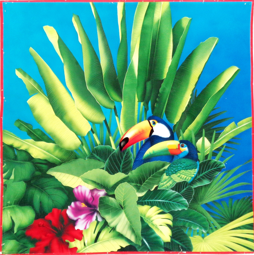 Những chú chim toucan được chế tác từ xà cừ, chạm khắc và vẽ tay cả hai mặt, mang lại cảm giác chân thực đến kinh ngạc. Sự tương phản giữa sắc xanh rực rỡ của lông vũ và màu xanh lá của tán lá tạo nên chiều sâu thị giác ấn tượng. Tourbillon tại 12 giờ được trang trí bằng một bông hoa fuchsia, đóng vai trò như điểm nhấn màu sắc táo bạo.