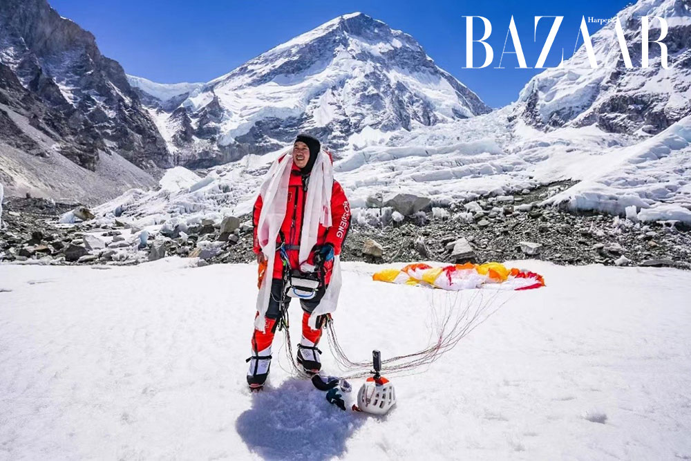 Mu Zi hoàn thành thử thách dù lượn và hạ cánh tại basecamp