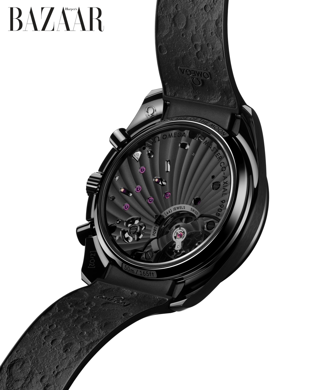 OMEGA mang đến bước tiến mới trong nghệ thuật chế tác dây đeo: Dây đeo bằng nylon giờ đây được trang bị lớp lót cao su để tăng cường sự thoải mái. Phiên bản dây cao su được chạm khắc hoa văn mô phỏng bề mặt Mặt trăng ở mặt sau, như sợi dây kết nối hữu hình giữa người đeo và di sản khám phá vũ trụ.