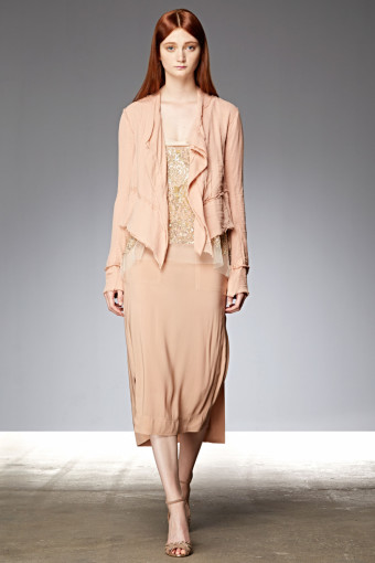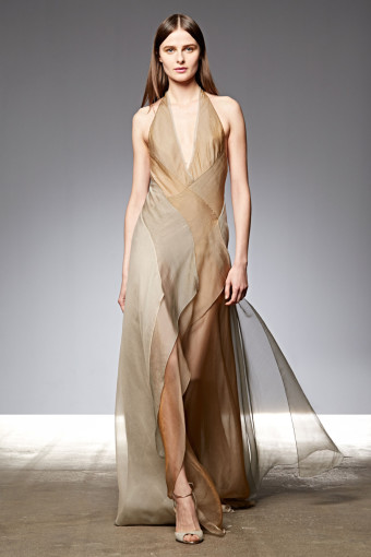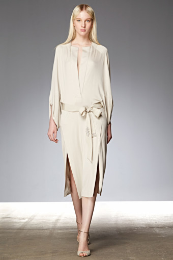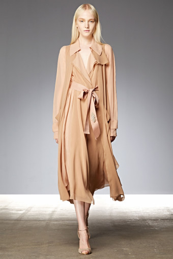 Bỏ đi các phom dáng cứng nhắc của mùa trước, trong mùa resort 2015, Donna Karan mang đến một bộ sưu tập mềm mại, thoải mái như những trang phục mặc ngủ. Các chất liệu mỏng, mềm rủ cùng những gam màu nhạt như xám bạc, nude, hồng phấn góp phần tạo nên cảm giác thư giãn nhẹ nhàng cho các quý cô trong mùa nghỉ dưỡng sang năm.