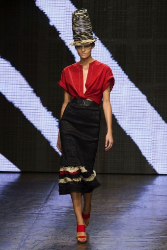 Kiểu dáng của các thiết kế cũng góp phần tạo nên nét tươi mới cho bộ sưu tập. Áo dạng bra có thiết kế ôm sát khỏe khoắn hay có cổ chữ V sâu và rộng phá cách. Những bộ đầm shirtdress kèm thắt lưng hay váy midi xòe đi cùng áo cổ thuyền xăng tay mang đến phong cách relax, bụi bặm mà vẫn chỉn chu. Chưa kể mẫu nón cao ngất trên đầu người mẫu Karlie Kloss mà có lẽ stylist của nam ca sỹ Pharell Williams đã đặt trước.