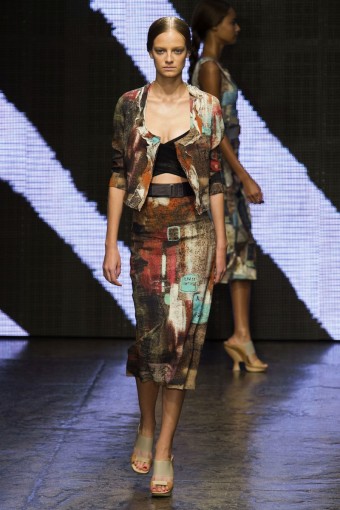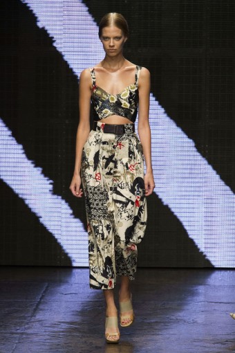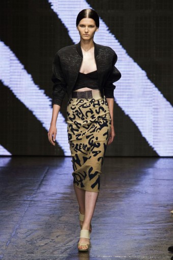 “Đã đến lúc phô diễn sắc màu và vẽ nên bức tranh thành thị sành điệu”, đó là thông điệp của Donna Karan tại show diễn Xuân Hè lần này. Nhà thiết kế lấy cảm hứng từ nghệ thuật đường phố, cụ thể là biến những hình vẽ graffiti của họa sỹ người Mỹ gốc Phi quá cố Jean-Michel Basquiat (*) thành họa tiết tràn ngập trên các thiết kế. Điển hình như áo dạng bra đi cùng quần lửng lưng cao hay áo khoác dài kèm thắt lưng đồng bộ. Những họa hình này chủ yếu mang các gam màu đen, kem, đỏ vẽ nên một trong những bộ sưu tập sống động nhất của Donna Karan.