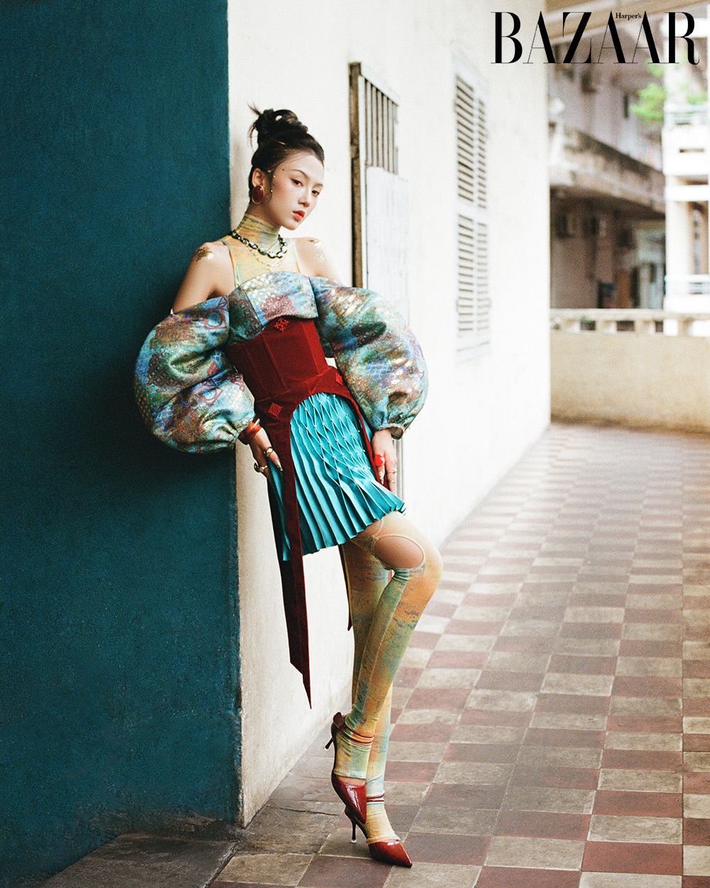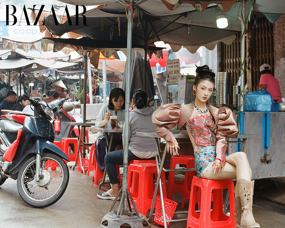 Bộ sưu tập tốt nghiệp của Dương Giai Huệ mang chủ đề “Thiết kế trang phục Xuân Hè cho nữ giới từ 20–30 tuổi theo phong cách maximalism”, lấy cảm hứng từ vẻ đẹp kiến trúc nhà ở của cộng đồng người Hoa tại khu vực Chợ Lớn.