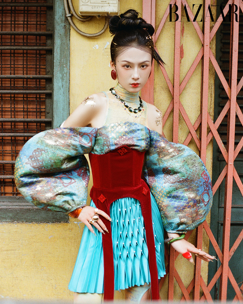 Lấy cảm hứng từ đời sống văn hóa đặc trưng của cộng đồng người Hoa sinh sống tại TP.HCM, bộ sưu tập tốt nghiệp mang tên Tụ Sắc của nữ sinh Dương Gia Huệ là bản giao hòa giữa truyền thống và sáng tạo đương đại.