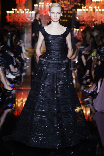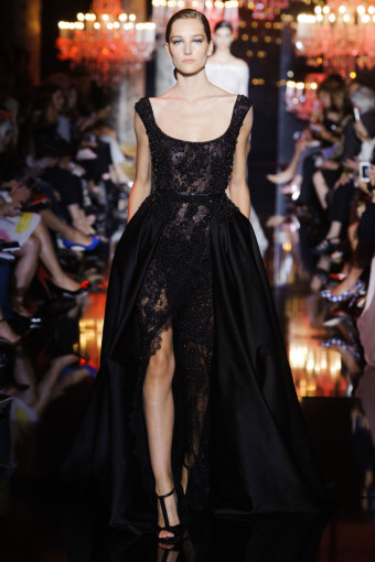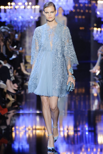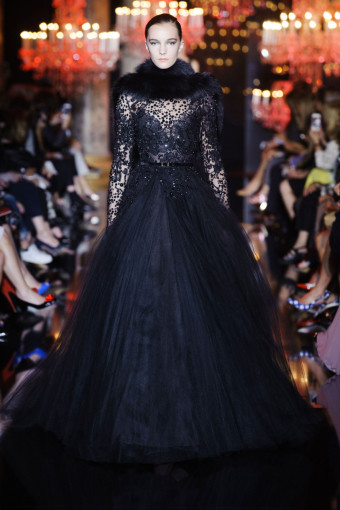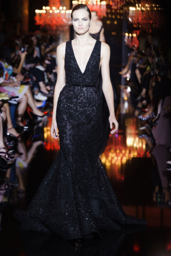 Show diễn Elie Saab mở màn trong bóng đêm huyền bí, được thắp sáng dần dần bởi những ngọn đèn chùm tạo phông nền lung linh phía sau các cô người mẫu. Nhưng chính những thiết kế trên người họ mới là điểm sáng xua tan màn đêm.