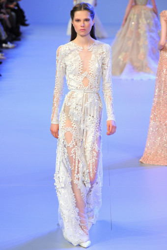 “Phụ nữ luôn tìm nơi tôi những chiếc đầm cầu kỳ, giống với mẫu váy cưới cuối cùng hôm nay”, Elie Saab phát biểu sau buổi diễn. “Họ muốn một chiếc váy có thể biến giấc mơ của họ thành hiện thực và đây cũng là mục đích của Elie Saab”.