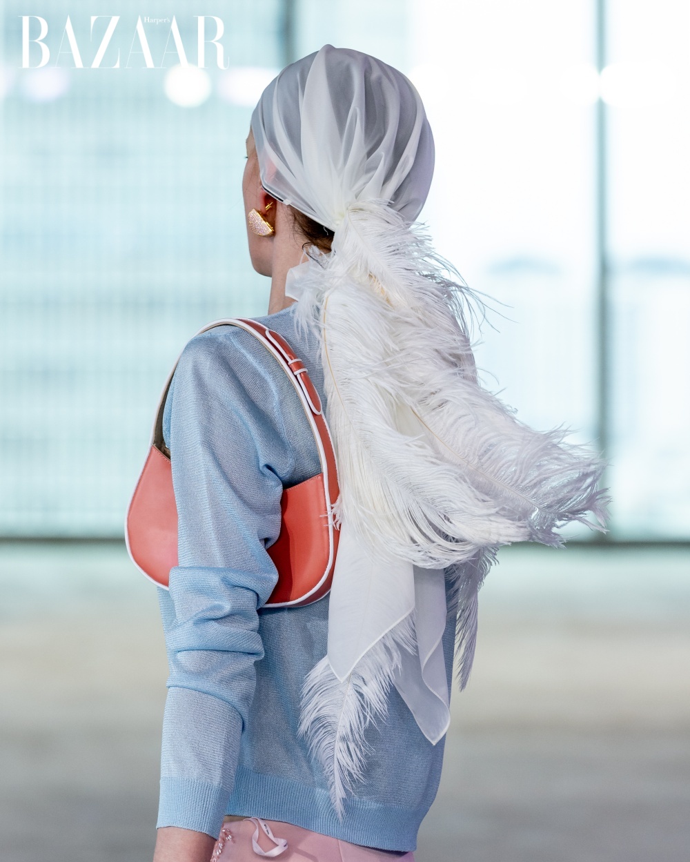 FANCì CLUB Xuân Hè 2026 còn trình làng đầy đủ các thiết kế phụ kiện đi kèm như túi xách, giày dép, phụ kiện… tạo nên một tổng thể thẩm mỹ nhất quán. Nhiều thiết kế túi hobo đủ màu sắc, khăn trùm đầu hay túi mini đính kết tinh xảo, găng tay được ê-kip tính toán, đặt để kỹ lưỡng.