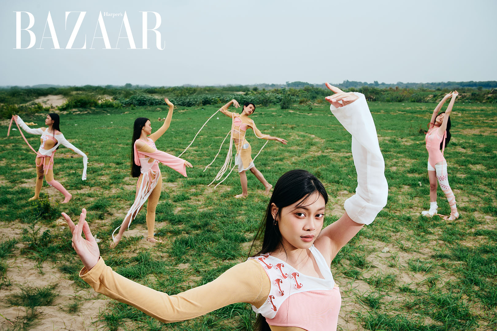 Những thiết kế đầu tiên mở ra bằng chất liệu Vải Xô, Thun Giấy và Organza, trong gam màu đỏ, hồng và trắng, tượng trưng cho ánh bình minh của tuổi trẻ. Đó là khi ta lần đầu bước ra thế giới, ngập tràn tò mò, háo hức và tin rằng “lớn lên” là điều thật đẹp.