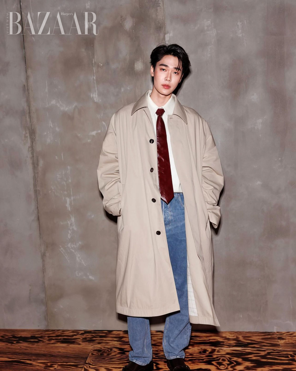 Trong số các khách mời tham dự, mỹ nam Vườn sao băng xuất hiện với combo đơn giản gồm áo thun trắng, quần jean, áo khoác trench coat và tạo điểm nhấn với cà vạt màu đỏ. Dù không lên đồ quá cầu kỳ, nam diễn viên vẫn đốn tim người hâm mộ với vẻ ngoài điển trai, bảnh bao cùng chiều cao ấn tượng.