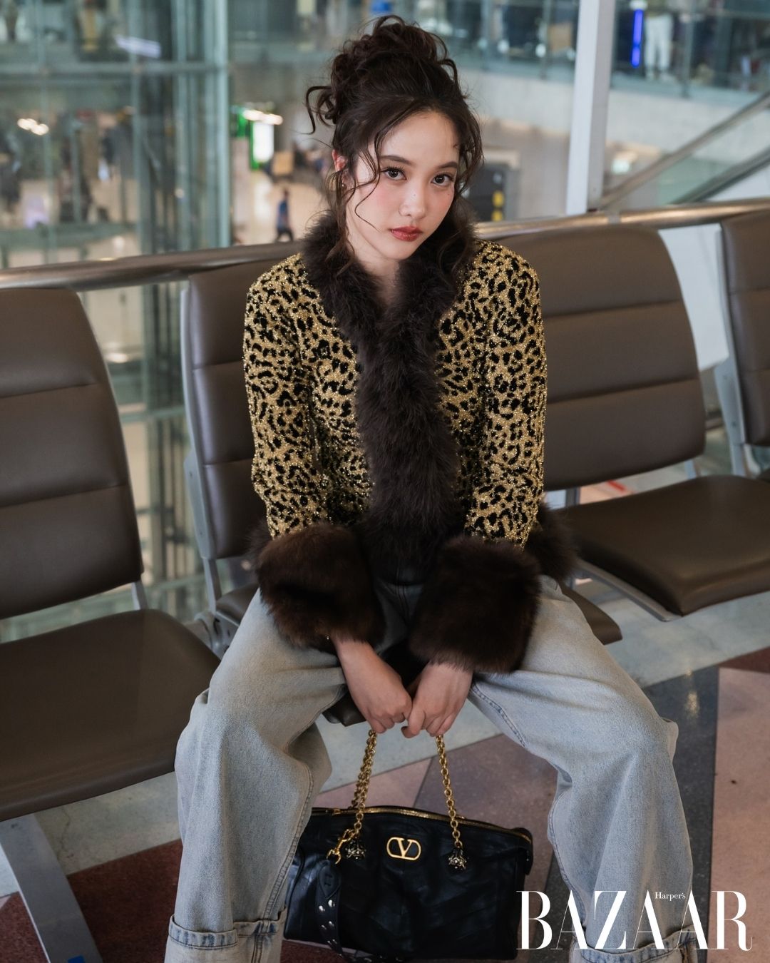 Trước đó, Freen xuất hiện tại sân bay Charles de Gaulle (Paris) trong bộ trang phục streetwear phá cách. Cô khoác ngoài chiếc áo da họa tiết da báo phối cùng quần jeans xanh nhạt, điểm xuyết bởi đôi sneaker caro thuộc dòng Valentino Thu Đông 2025, mang lại vẻ năng động, hiện đại.