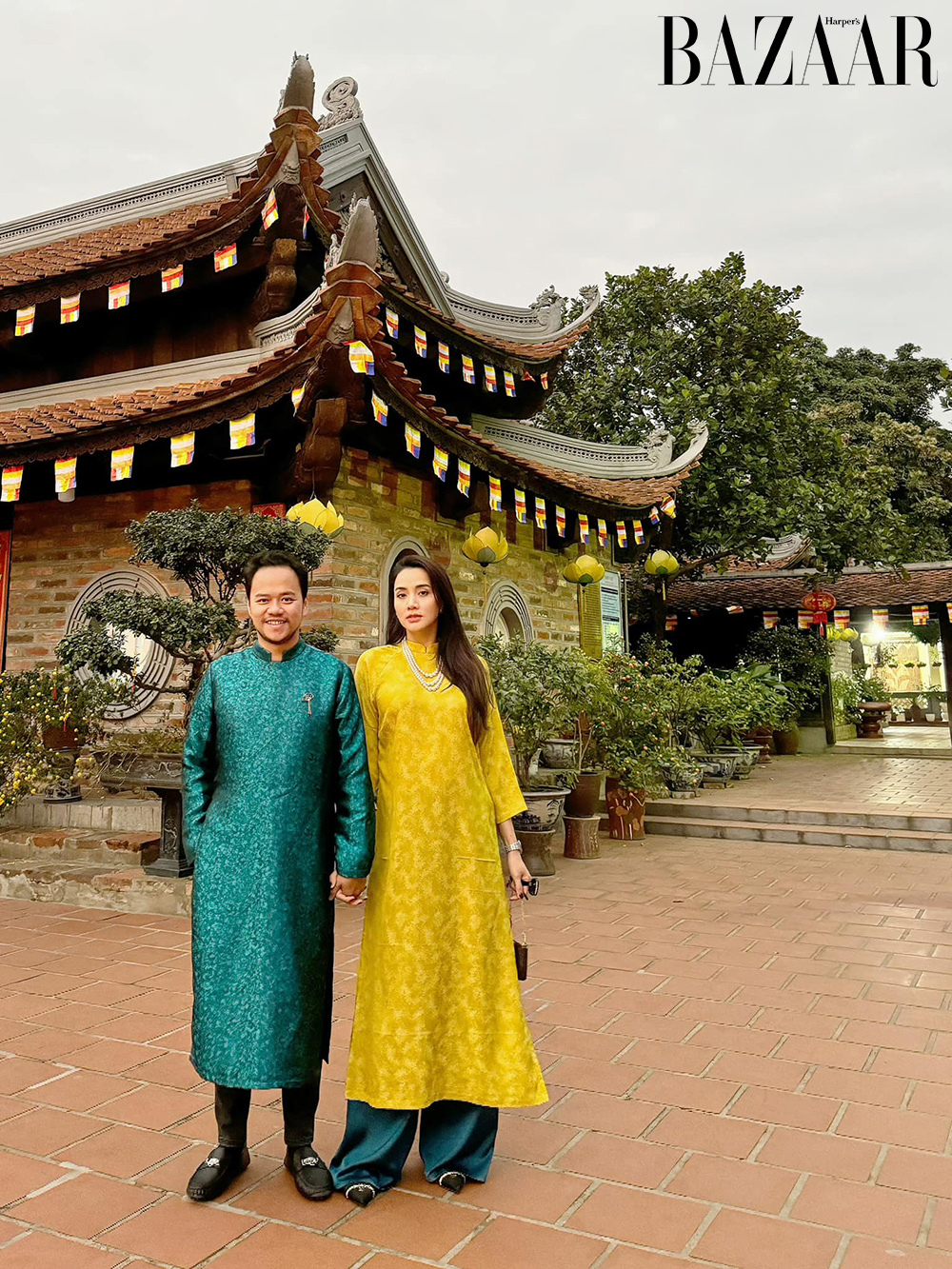 Gia đình vợ chồng Trang Nhung – Hoàng Duy lên đồ đồng điệu, đi du xuân vãng cảnh chùa đầu năm
