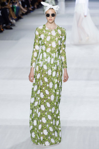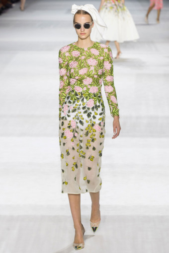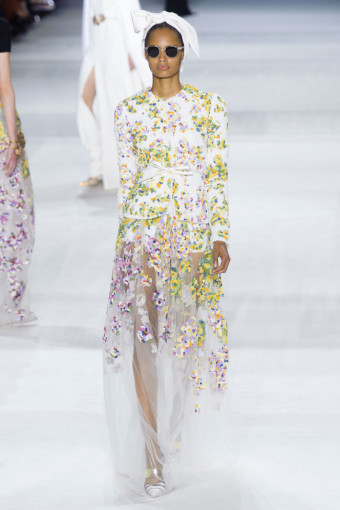 Ông dùng kỹ thuật thêu và đính kết hoa vải để tái hiện lại khu vườn với muôn hoa đua nở di động trên cơ thể người mẫu. Đó là những bộ váy ôm bodycon kết hoa trên ren hay những chiếc đầm xòe rộng thêu hoa mimosa và thu mẫu đơn (anemone). Nhà thiết kế còn tái hiện sự xum xuê của loài hoa tử đằng tím (wisteria) trên những chiếc đầm bằng chất liệu mousseline in và kết đầy hoa trên áo.
