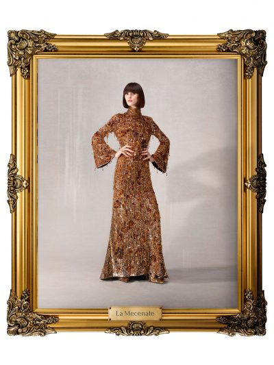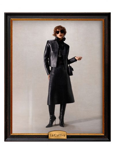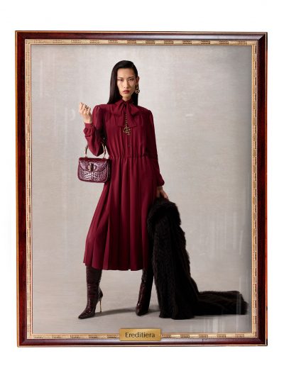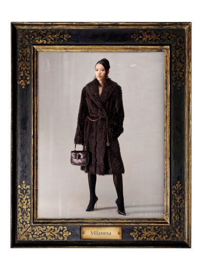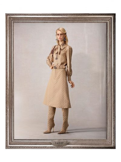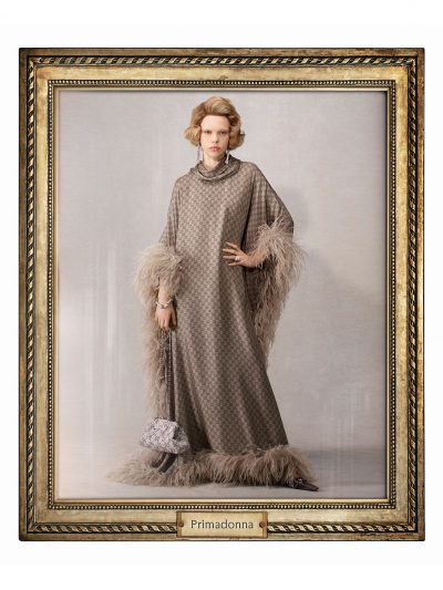 Mỗi look đều được đóng khung như một bức chân dung gia đình với tên nhân vật được khắc ở phía dưới, đại diện cho các nguyên mẫu khác nhau. “La Bomba [22] táo bạo, mạnh mẽ như miêu nữ. La Cattiva [14] toát lên vẻ thanh lịch nghiêm nghị của một người phụ nữ quyến rũ chết người. Miss Aperitivo [26] đang mải mê tận hưởng cuộc sống, trong khi L’Influencer [20] đại diện cho những tín đồ thời trang mạng xã hội”, Gucci chú thích về một vài look tiêu biểu. Tất cả đều rất điện ảnh, kịch tính và hài hước. Nói cách khác, bộ sưu tập thật sự đúng chất Ý.