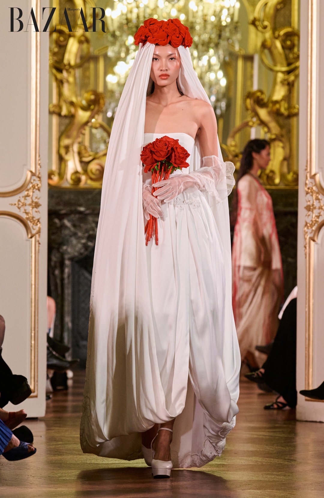 Tú Anh là vedette của bộ sưu tập HA LINH THU Xuân Hè 2026. Photo: Luca Sorrentino / Gorunway.com