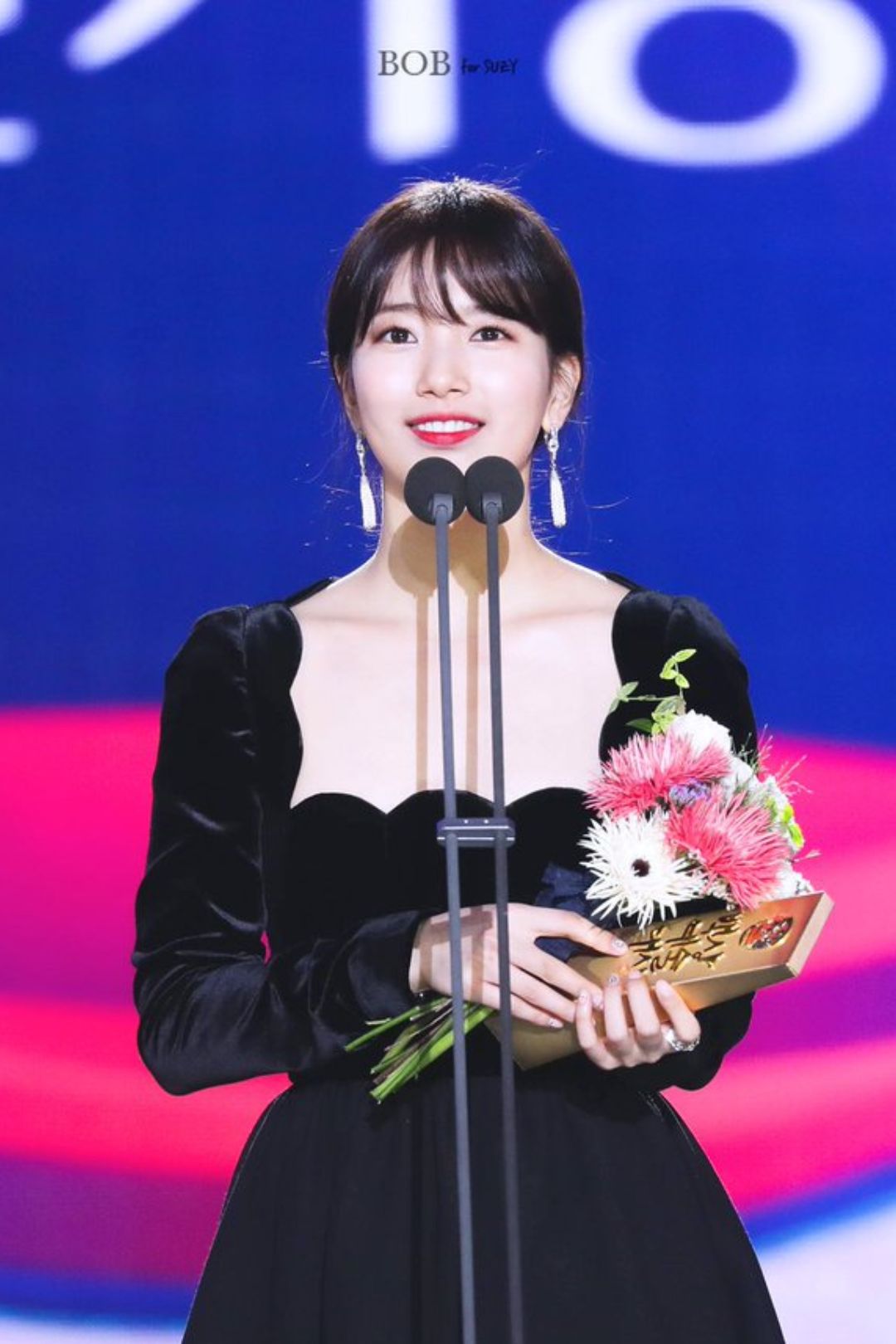 Trên sân khấu, Suzy nhận hoa chúc mừng cho sự tận tụy và mối quan hệ tốt đẹp của cô với Baeksang. Suzy rạng rỡ và chia sẻ: “Tôi vẫn nhớ như in lần đầu dẫn chương trình. Khi đó vì là lần đầu nên tôi rất run, nhưng cảm xúc hồi hộp và hạnh phúc vì được đảm nhận vai trò MC của Baeksang còn lớn hơn. Vậy mà giờ tôi đã đứng ở đây tròn 10 năm, cảm xúc thật khó tả.”