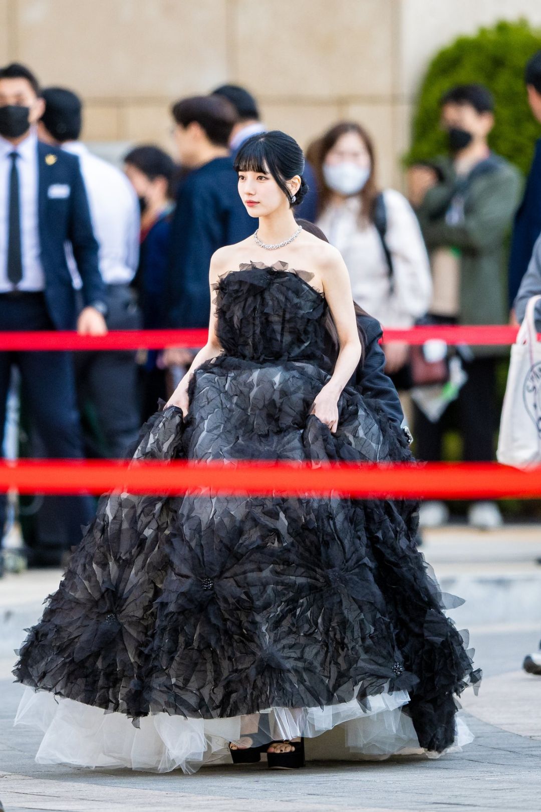 Từ năm 2022, Suzy ngày một gây ấn tượng với nhan sắc mặn mà ở những năm cuối cùng của tuổi 20 – đầu 30. Cạnh phong cách thanh lịch thân thuộc, cô cũng sẵn sàng thử nghiệm với những bộ cánh gợi cảm hơn, có đường xẻ ở ngực hoặc chân. Kết hợp với vẻ đẹp trong suốt của Suzy, những chiếc váy vẫn phù hợp với một lễ trao giải danh giá, trang trọng.